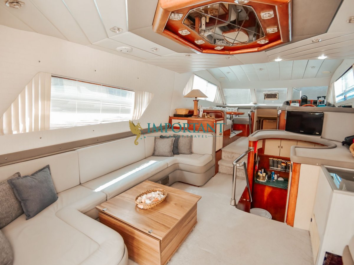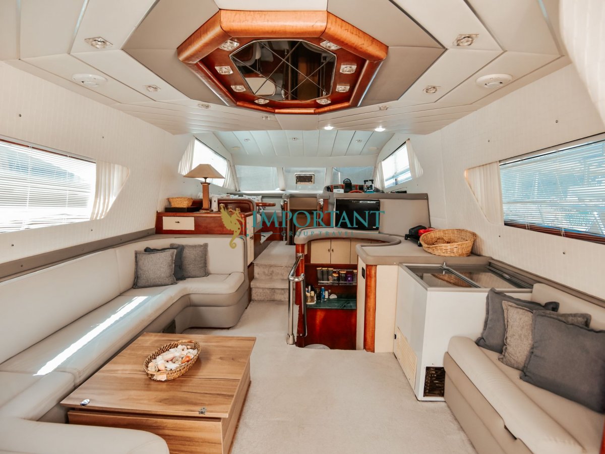 Yatımızın iç dizaynı misafirlerimizin tüm ihtiyacını karşılayacak şekilde dekore edilmiş olup, salonda ve güvertede yemek masalarına ve tam teşekküllü bir mutfağa sahiptir.