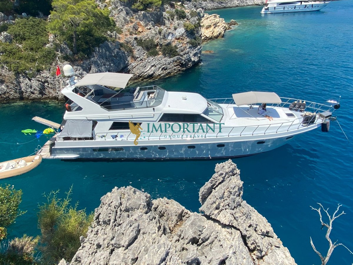 3 kabinli (1 adet çift kişilik yataklı master ve 1 adet double ve 1 adet Twin kabin) 6 kişilik kiralık motoryatımız 22 Mt uzunluğundadır. Ayrıca, Göcek'te günübirlik özel tekne turu isteyen misafirlerimiz, yemek yakıt dahil, sadece kendilerine özel olan Göcek kalkışlı günlük kiralık teknemiz ileGöcek'in eşsiz güzellikteki koylarını görme şansı bulabilirler.