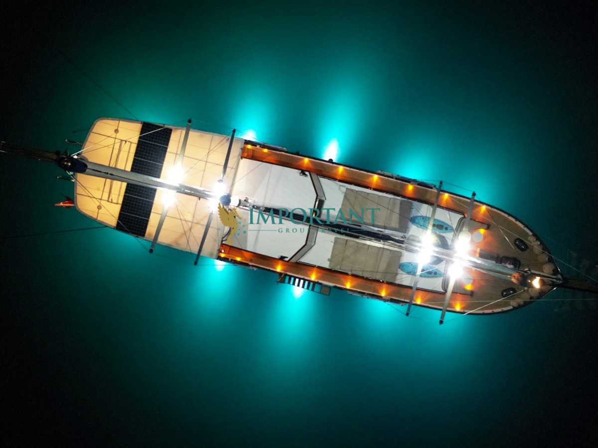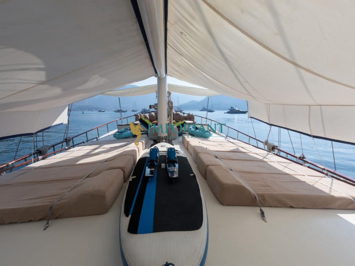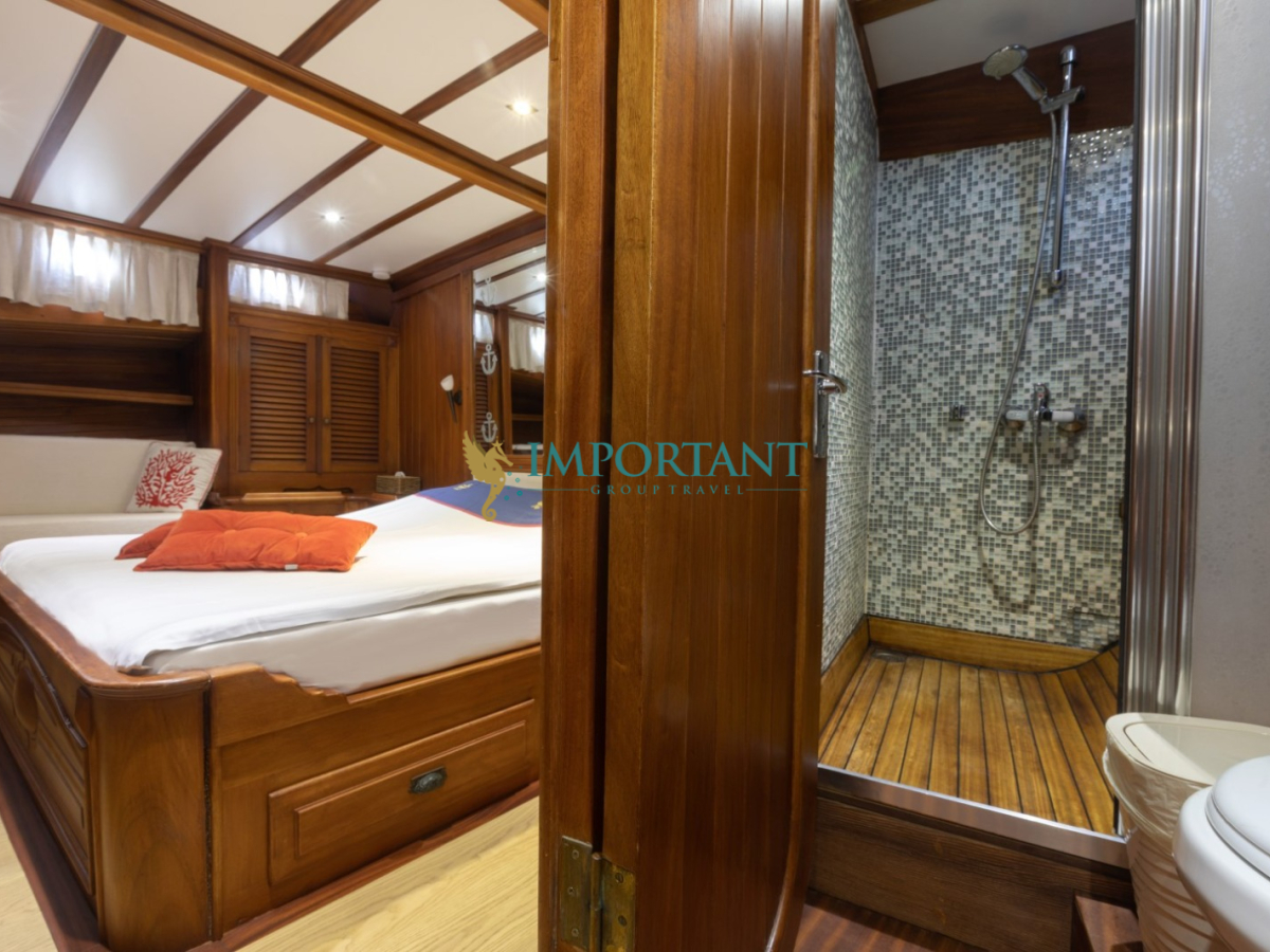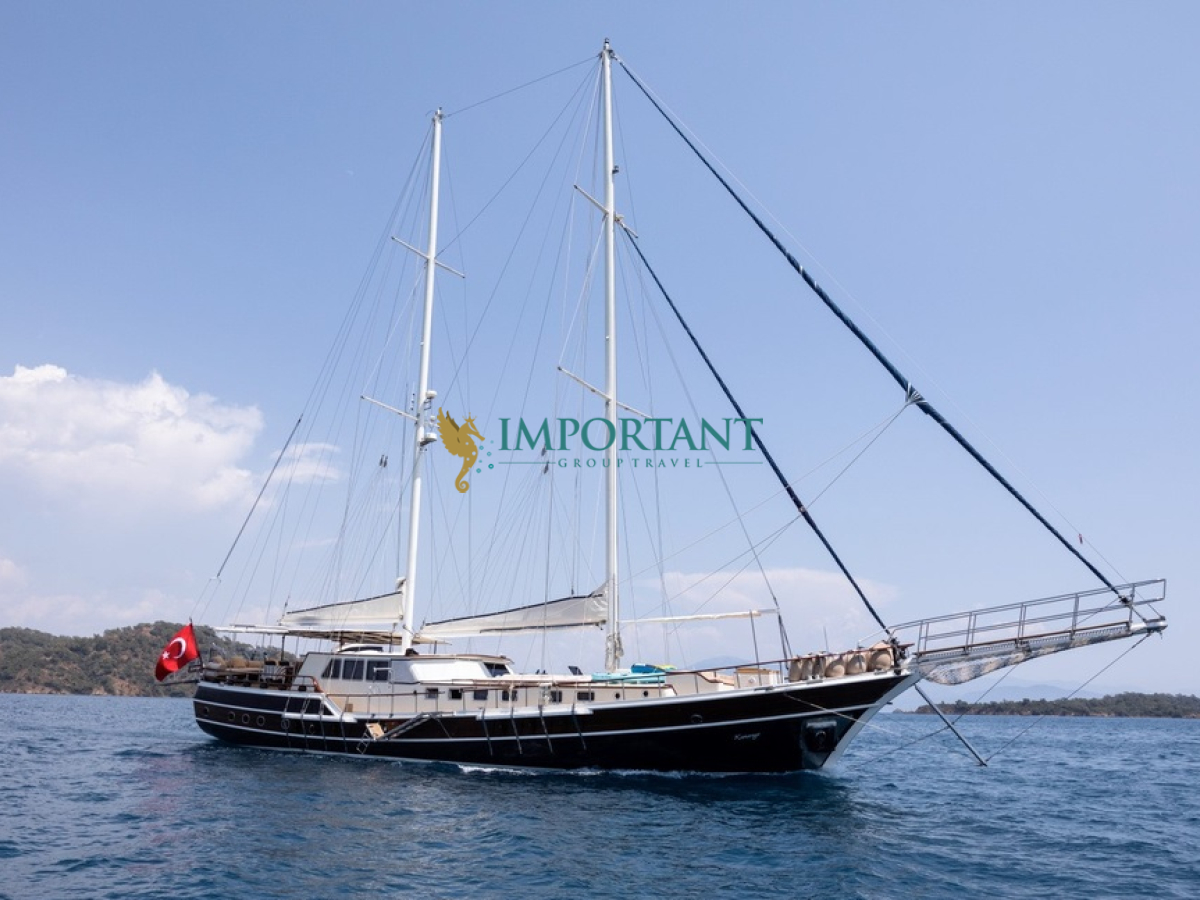 Bodrum çıkışlı bu lüks guletimizle unutulmaz bir mavi yolculuğa çıkabilirsiniz. Farklı destinasyonları tercih eden misafirlerimiz için Marmaris'in eşsiz doğal güzelliklerinin tadını çıkarabilir, Göcek’in gizli cennetlerini ziyaret edebilir veya Fethiye'nin kristal berraklığındaki sularında yüzebilir, Bozburun’un bozulmamış güzelliklerinde de zaman geçirebilirsiniz; ayrıca maceranızı Yunan Adaları’na kadar uzatabilirsiniz (Yunan Adaları için ekstra ücretler hakkında bilgi almak için bizimle iletişime geçin). Bu unutulmaz deneyimde hem evinizdeymiş gibi huzurlu hissedecek hem de Ege’nin masmavi sularında özgürlüğün tadını çıkaracaksınız.