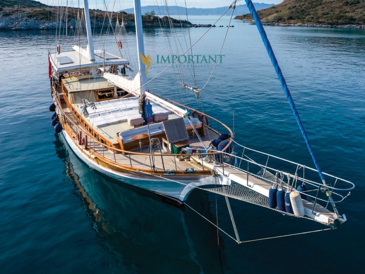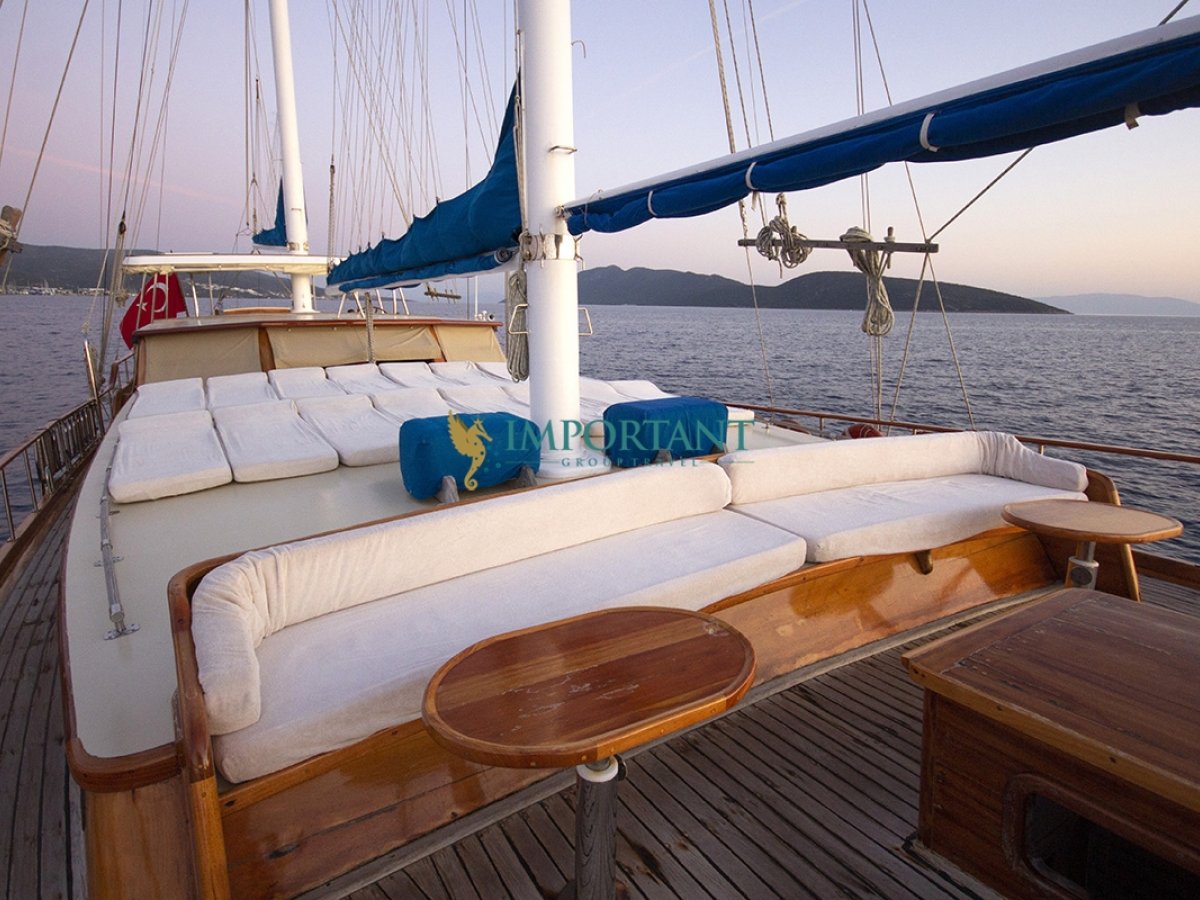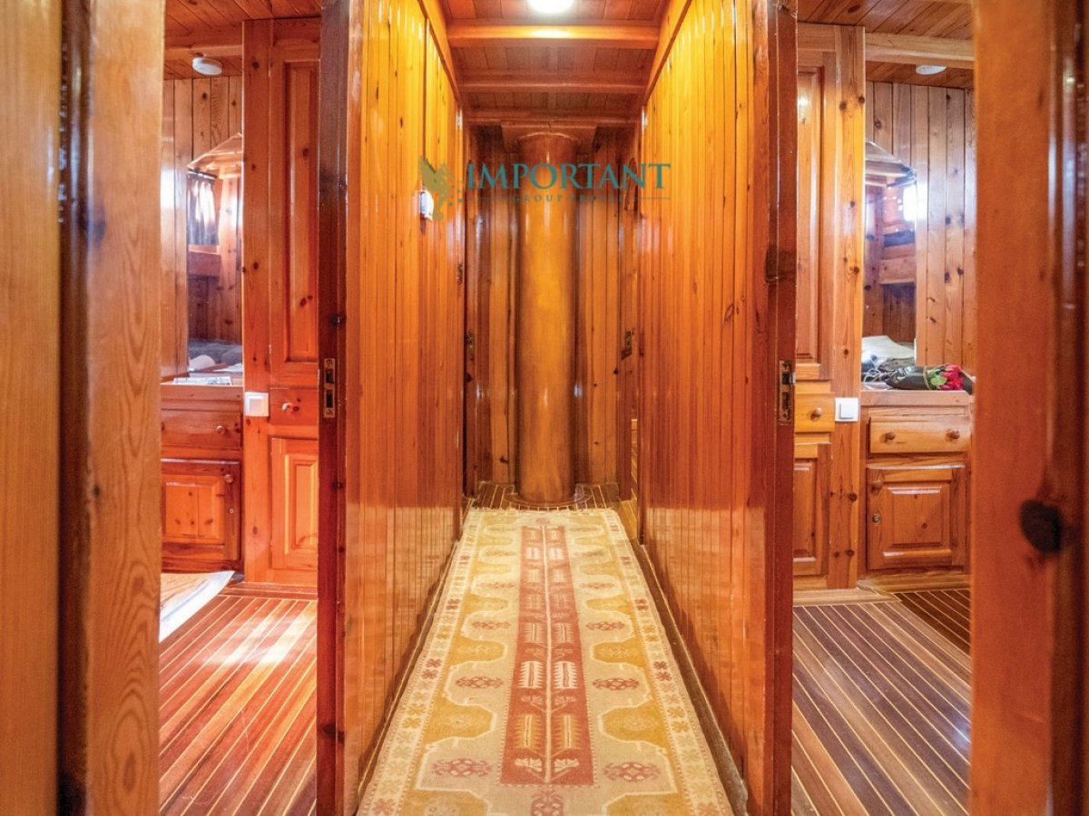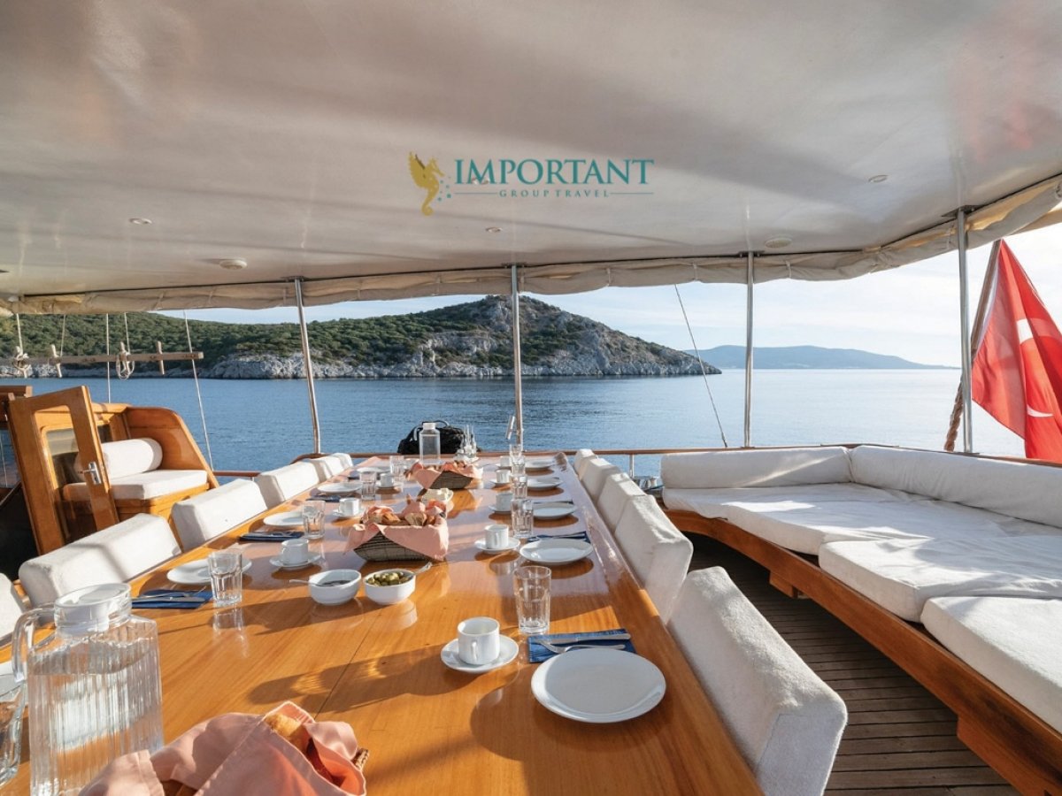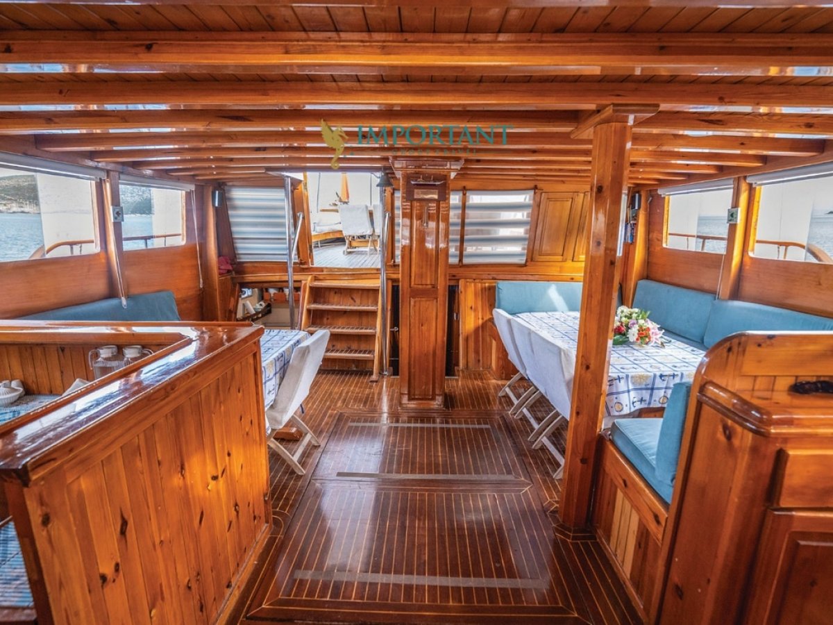 İç dizaynı, misafirlerimizin ihtiyaçlarını karşılamak üzere sade ve konforlu bir şekilde düzenlenmiştir. Geniş salonu ve güvertesinde yer alan yemek masaları ile sevdiklerinizle birlikte keyifli vakit geçirebileceğiniz alanlar sunmaktadır. Tam donanımlı mutfağımız, teknede geçirdiğiniz süre boyunca tüm gereksinimlerinizi karşılar. Her kabinde duş, wc ve klima bulunmaktadır. Bodrum çıkışlı bu guletimizle unutulmaz bir mavi yolculuğa çıkabilir, denizde de olsa evinizin rahatlığını hissedebilirsiniz.