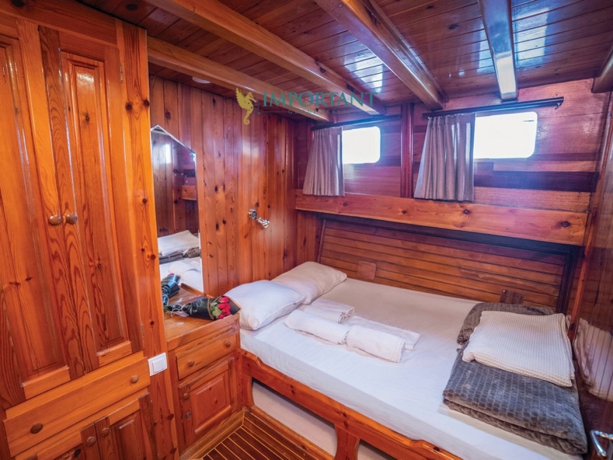 Bodrum çıkışlı 25 metre uzunluğundaki kiralık guletimiz, Ege Denizi’nin büyüleyici koylarını keşfetmeniz için harika bir fırsat sunuyor. Teknemiz, toplamda 16 kişilik konaklama kapasitesine sahip olup, 8 adet çift kişilik yataklı Double kabin ile donatılmıştır.