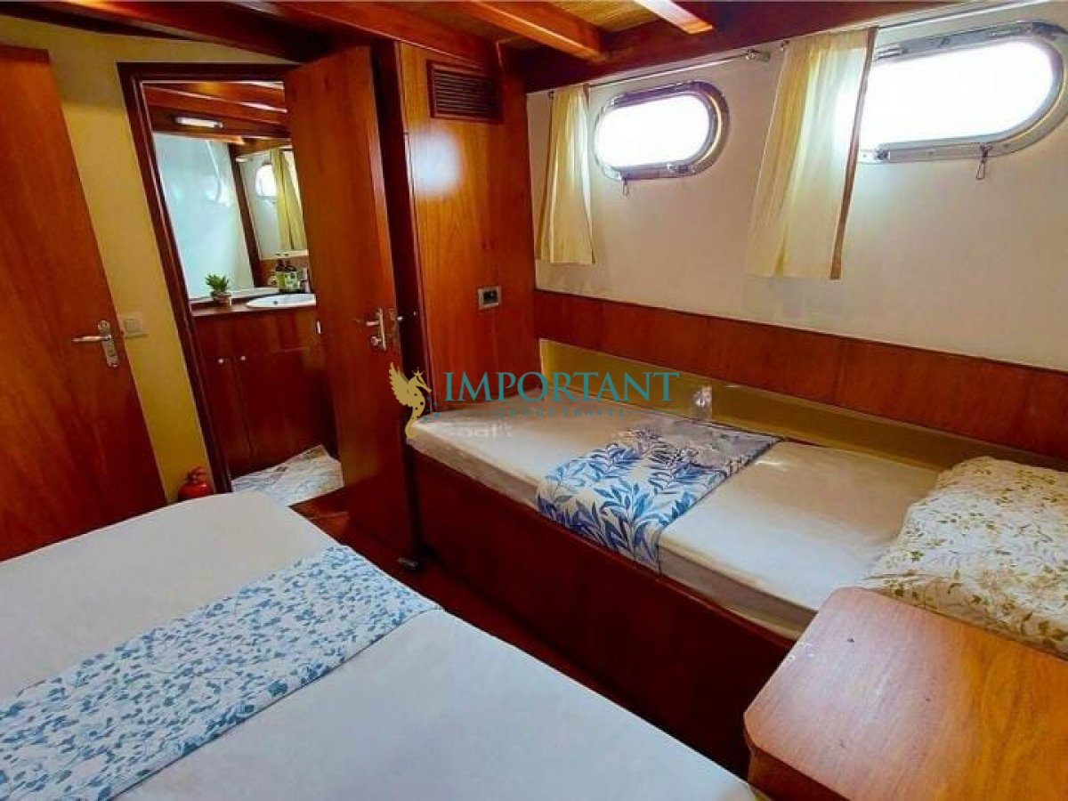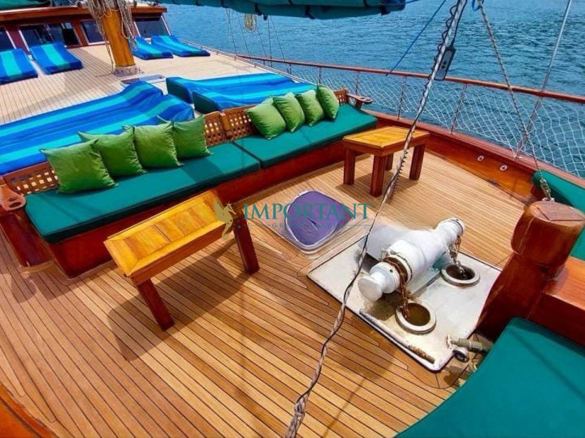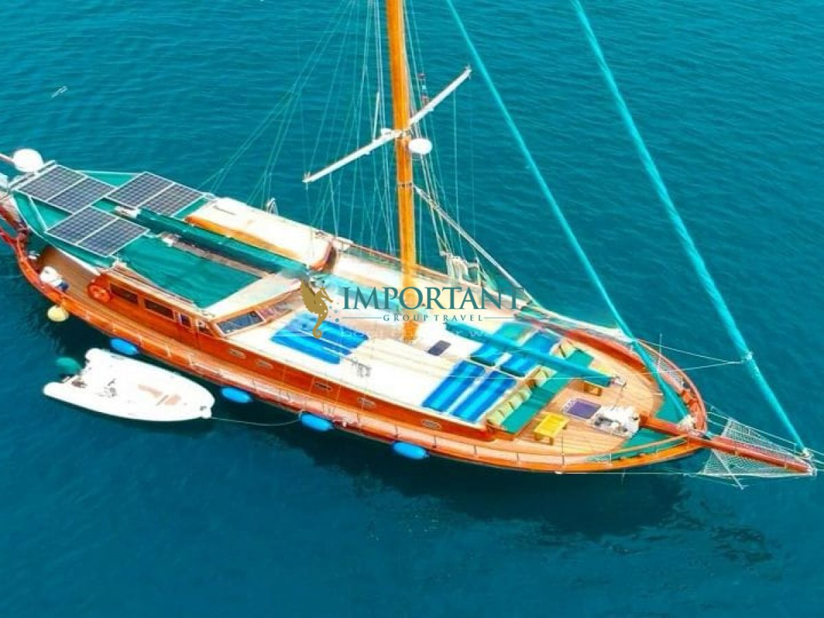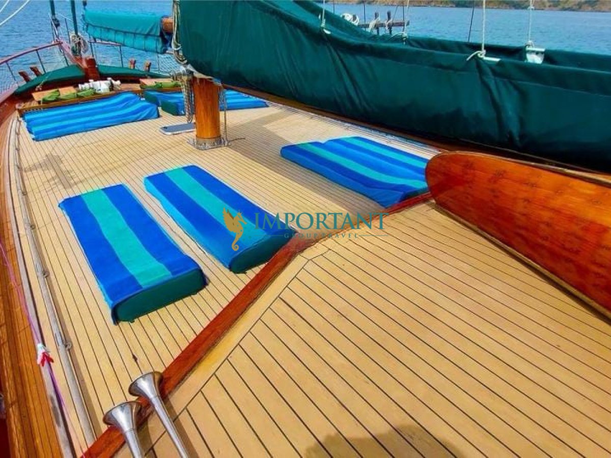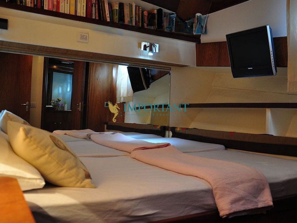 Bodrum çıkışlı 20 metre uzunluğundaki kiralık guletimiz, Ege Denizi’nin büyüleyici koylarını keşfetmeniz için harika bir fırsat sunuyor. Teknemiz, toplamda 6 kişilik konaklama kapasitesine sahip olup, 1 Double ve 2 Twin kabin ile donatılmıştır.