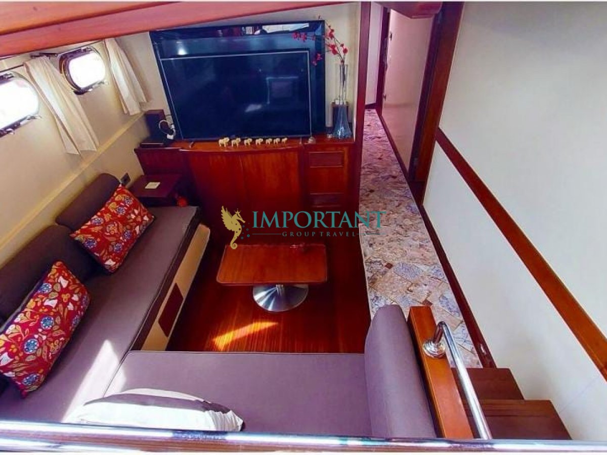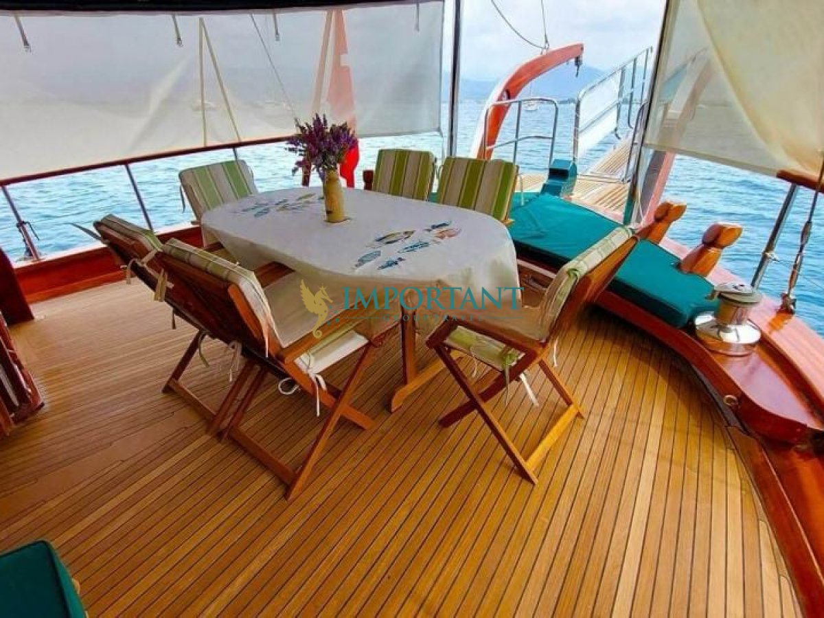 İç dizaynı, misafirlerimizin ihtiyaçlarını karşılamak üzere sade ve konforlu bir şekilde düzenlenmiştir. Geniş salonu ve güvertesinde yer alan yemek masaları ile sevdiklerinizle birlikte keyifli vakit geçirebileceğiniz alanlar sunmaktadır. Tam donanımlı mutfağımız, teknede geçirdiğiniz süre boyunca tüm gereksinimlerinizi karşılar. Her kabinde duş, wc ve klima ( 6 saat kullanım) bulunmaktadır. Bodrum çıkışlı bu guletimizle unutulmaz bir mavi yolculuğa çıkabilir, denizde de olsa evinizin rahatlığını hissedebilirsiniz.
