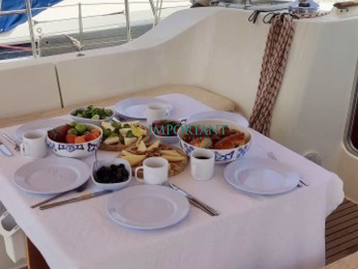 Kiralık yelkenli teknemiz tüm ihtiyaçlarınızı karşılayabilecek şekilde donatılmış olup, tam donanımlı bir mutfak gibi, misafrilerimizin konforlu bir tatil geçirebilmesi için gerekli özelliklerin hepsine sahiptir. Teknemizin Master kabininde bir banyo, toplamda 3 adet banyo mevcuttur.