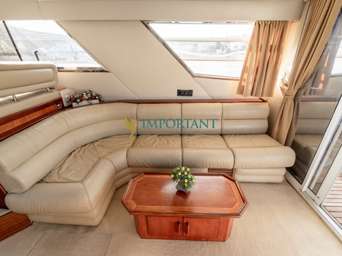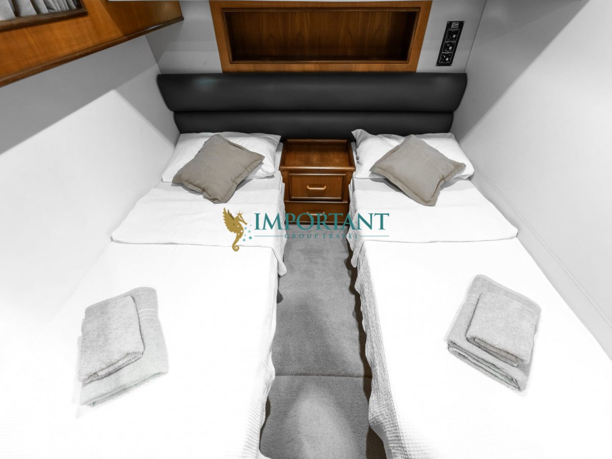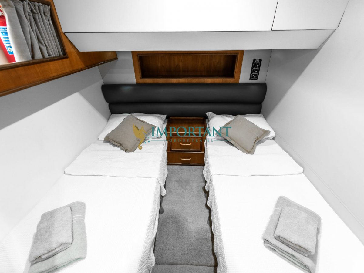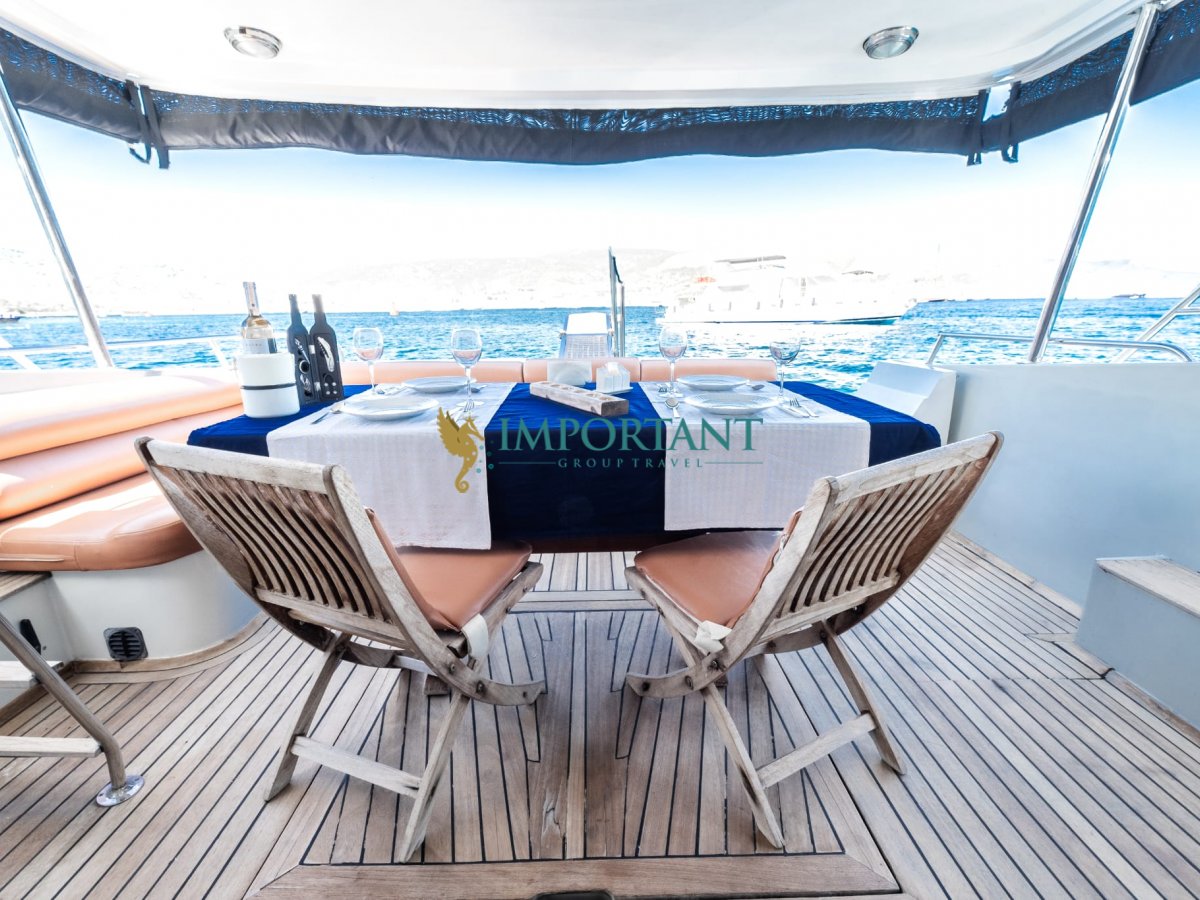 Yatımızın iç dizaynı misafirlerimizin tüm ihtiyacını karşılayacak şekilde dekore edilmiş olup, salonda ve güvertede yemek masalarına ve tam teşekküllü bir mutfağa sahiptir. Ayrıca her kabinimizde wc, duş ve klima mevcuttur.