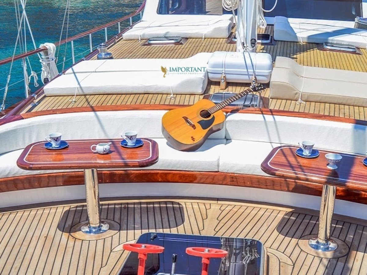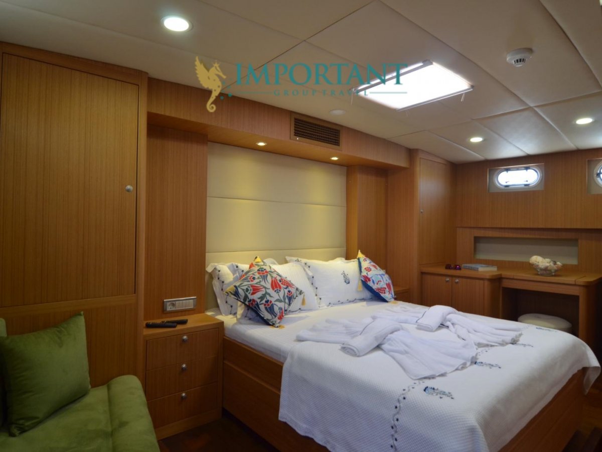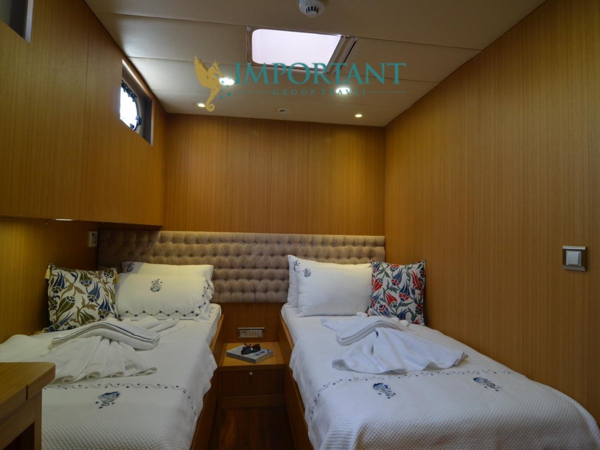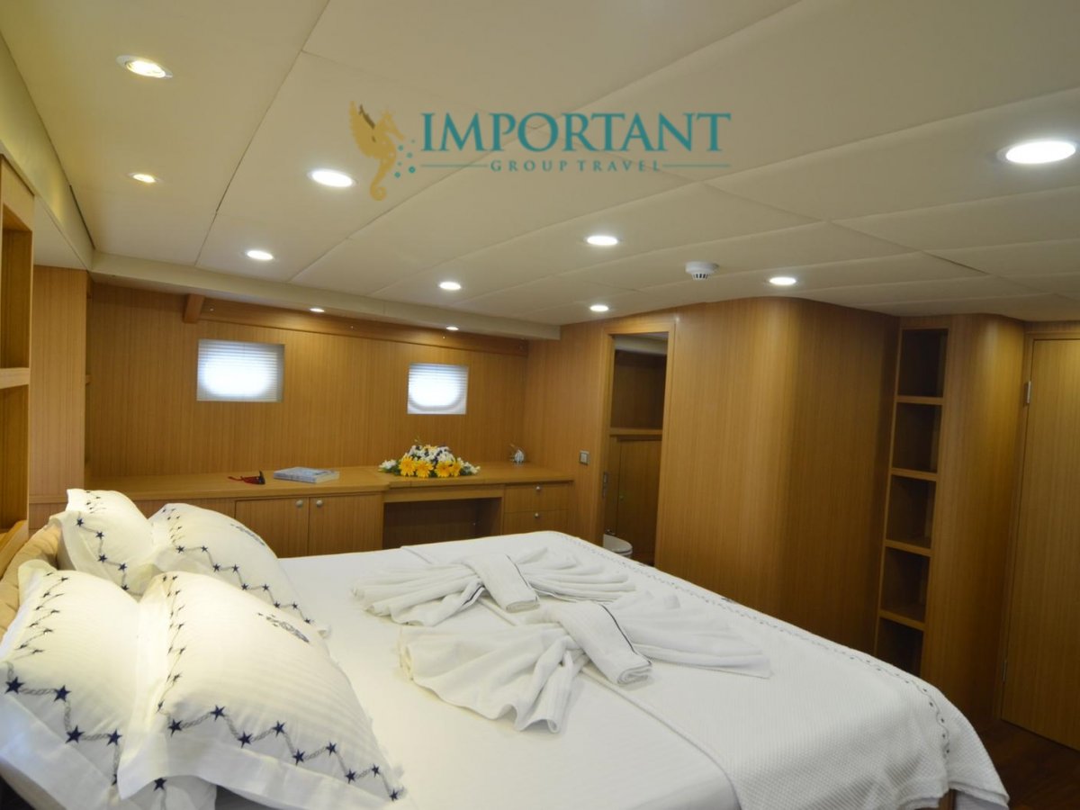 Bodrum çıkışlı 24 metre uzunluğundaki kiralık guletimiz, Ege Denizi’nin büyüleyici koylarını keşfetmeniz için harika bir fırsat sunuyor. Teknemiz, toplamda 8 kişilik konaklama kapasitesine sahip olup, 2 adet çift kişilik yataklı Master, 2 adet çift kişilik yataklı Double (Ayrılabilir yatak) kabin ile donatılmıştır.