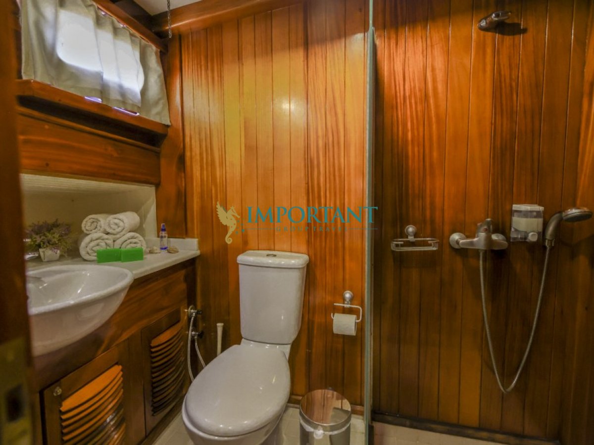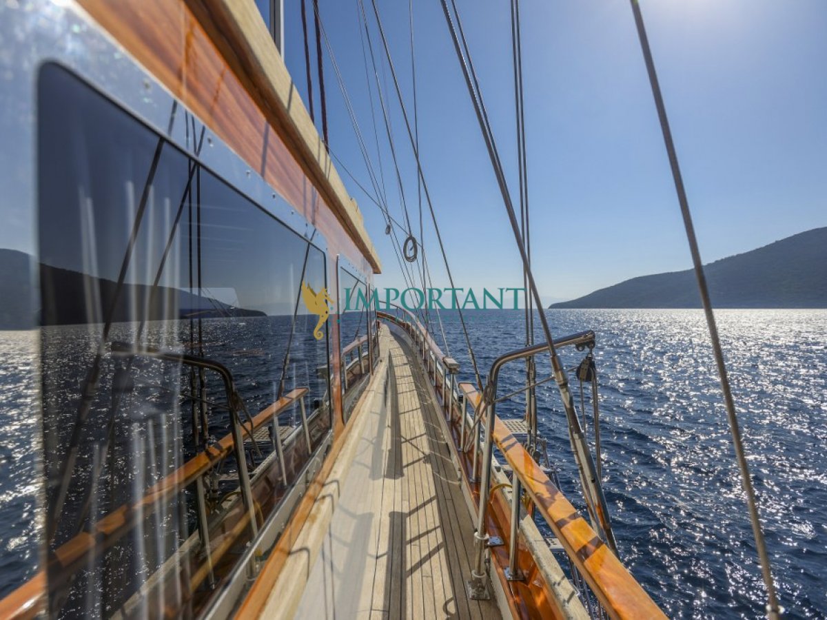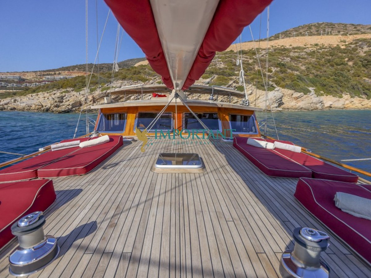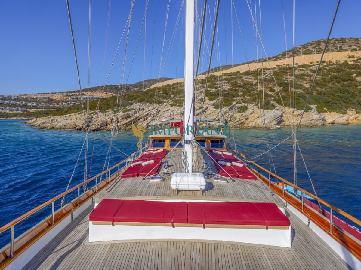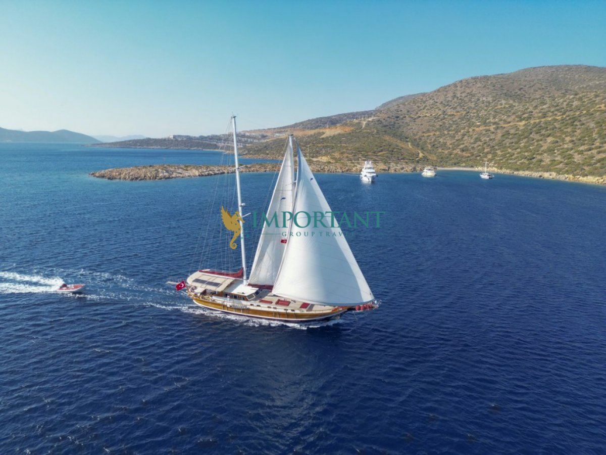 Bodrum çıkışlı 24 metre uzunluğundaki kiralık guletimiz, Ege Denizi’nin büyüleyici koylarını keşfetmeniz için harika bir fırsat sunuyor. Teknemiz, toplamda 8 kişilik konaklama kapasitesine sahip olup, 3 adet çift kişilik yataklı Master ve 1 adet twin kabin ile donatılmıştır.