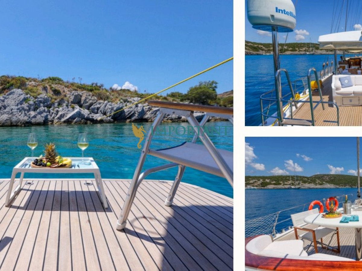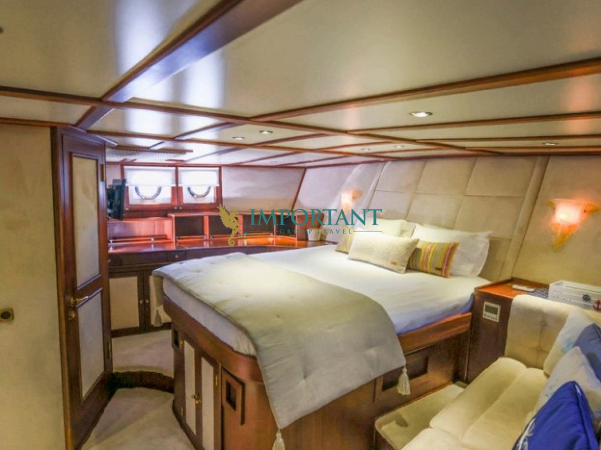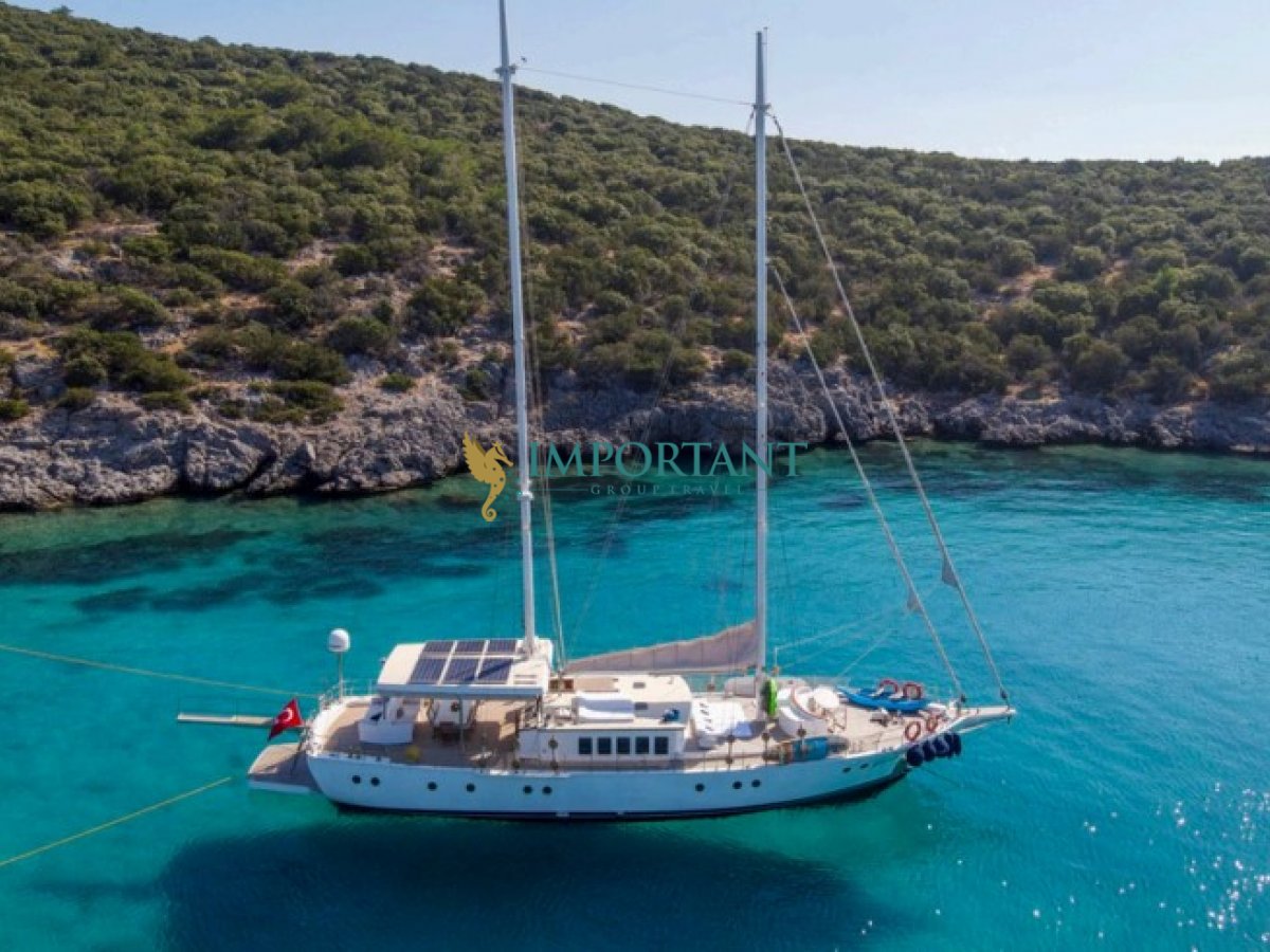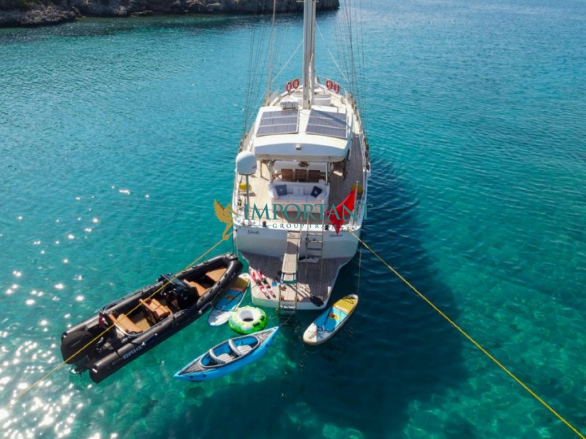 Bodrum çıkışlı 25 metre uzunluğundaki kiralık guletimiz, Ege Denizi’nin büyüleyici koylarını keşfetmeniz için harika bir fırsat sunuyor. Teknemiz, toplamda 8 kişilik konaklama kapasitesine sahip olup, 1 adet VİP, 1 adet çift kişilik yataklı Master ve 2 adet double kabin ile donatılmıştır.