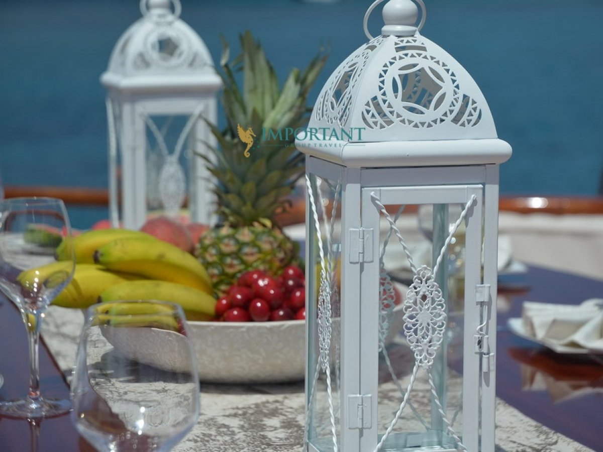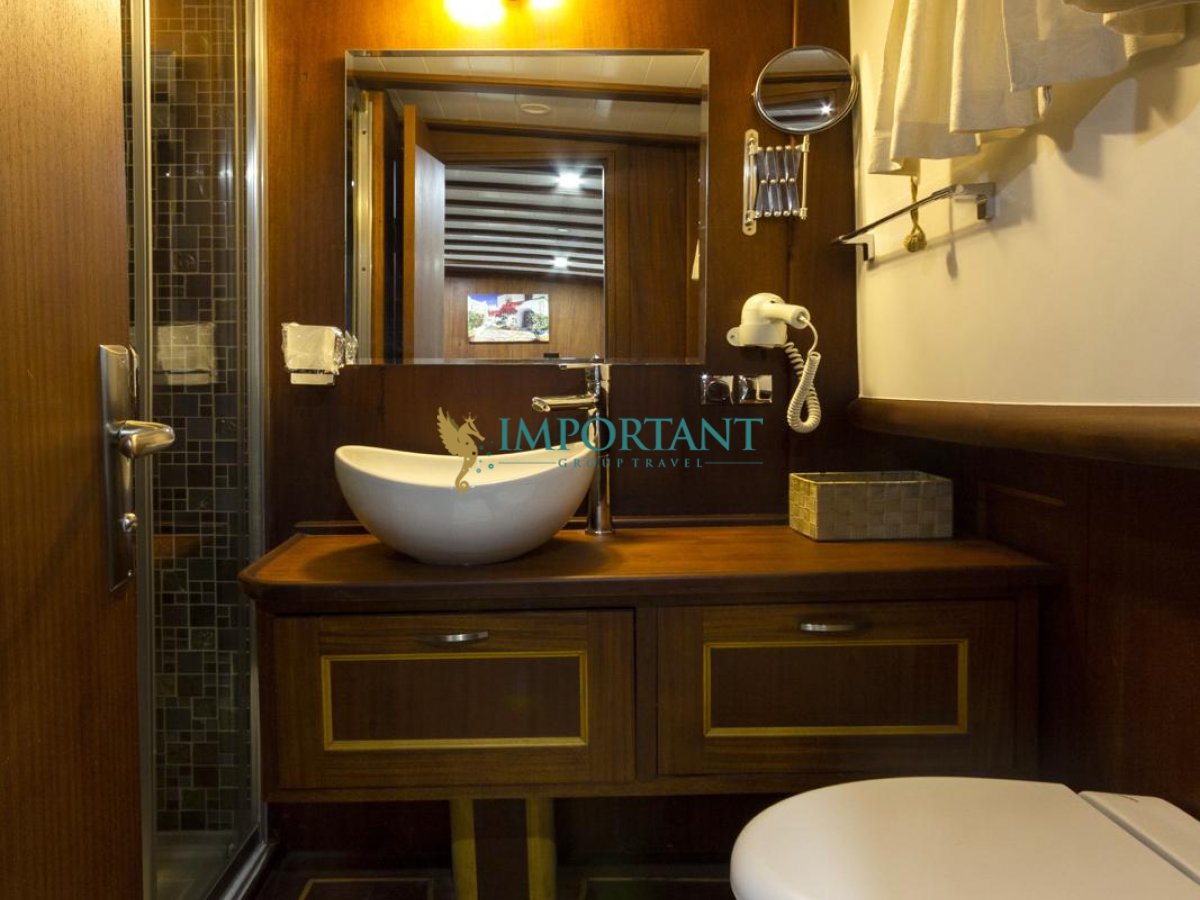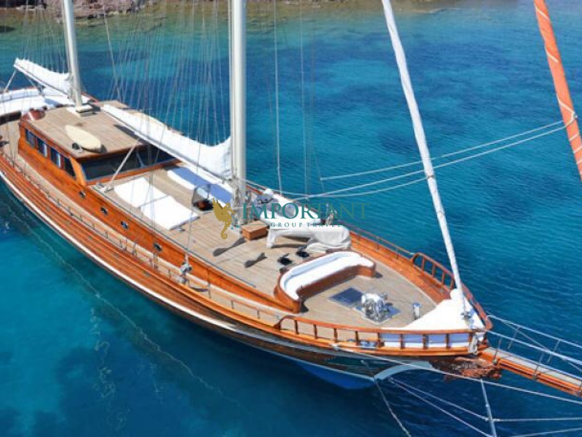 Bodrum çıkışlı bu lüks guletimizle unutulmaz bir mavi yolculuğa çıkabilirsiniz. Farklı destinasyonları tercih eden misafirlerimiz için Marmaris'in eşsiz doğal güzelliklerinin tadını çıkarabilir, Göcek’in gizli cennetlerini ziyaret edebilir veya Fethiye'nin kristal berraklığındaki sularında yüzebilir, Bozburun’un bozulmamış güzelliklerinde de zaman geçirebilirsiniz; ayrıca maceranızı Yunan Adaları’na kadar uzatabilirsiniz (Yunan Adaları için ekstra ücretler hakkında bilgi almak için bizimle iletişime geçin). Bu unutulmaz deneyimde hem evinizdeymiş gibi huzurlu hissedecek hem de Ege’nin masmavi sularında özgürlüğün tadını çıkaracaksınız.”