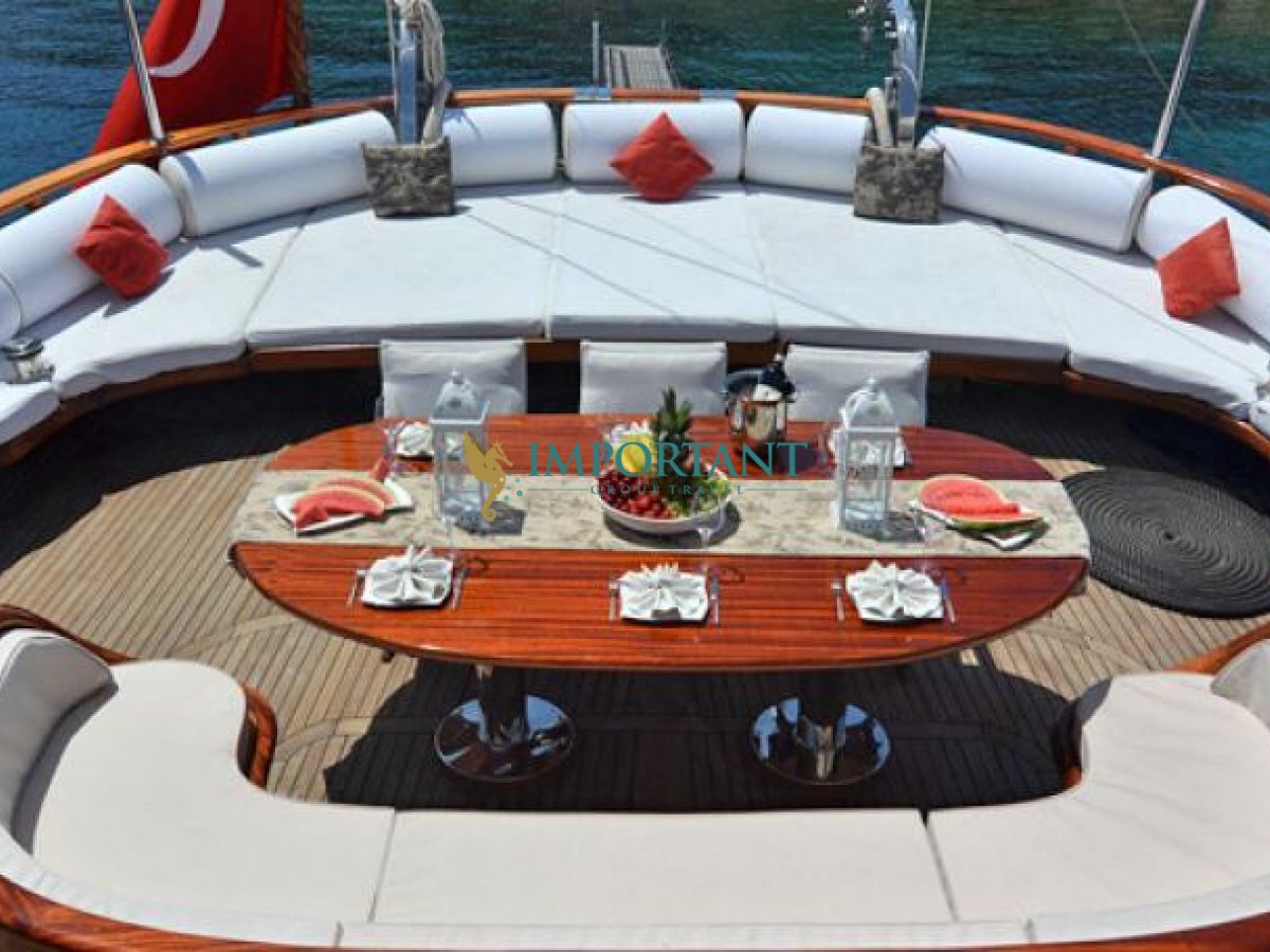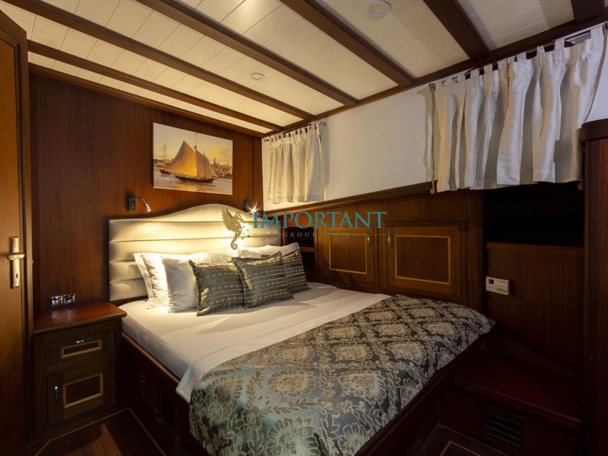 30 metre uzunluğundaki bu lüks gulet, Bodrum çıkışlı olarak Ege Denizi’nin büyüleyici koylarını ve masmavi sularını keşfetmeniz için eşsiz bir fırsat sunuyor. 2 adet çift kişilik yataklı Double ve 2 adet tek kişilik ayrı yataklı Twin kabini ile toplamda 8 kişilik konaklama kapasitesine sahip olan teknemiz, konfor ve lüksü bir arada sunmak üzere tasarlanmıştır.