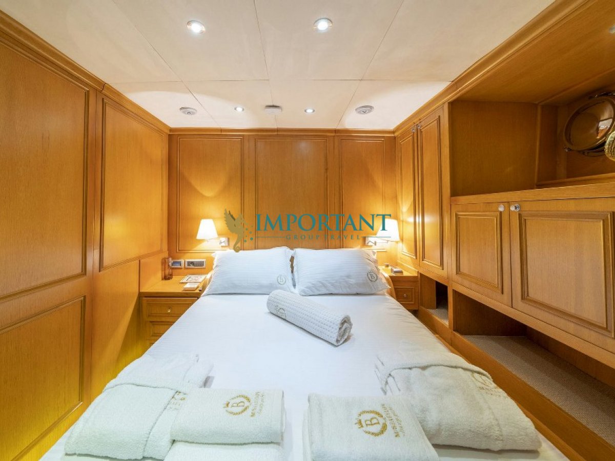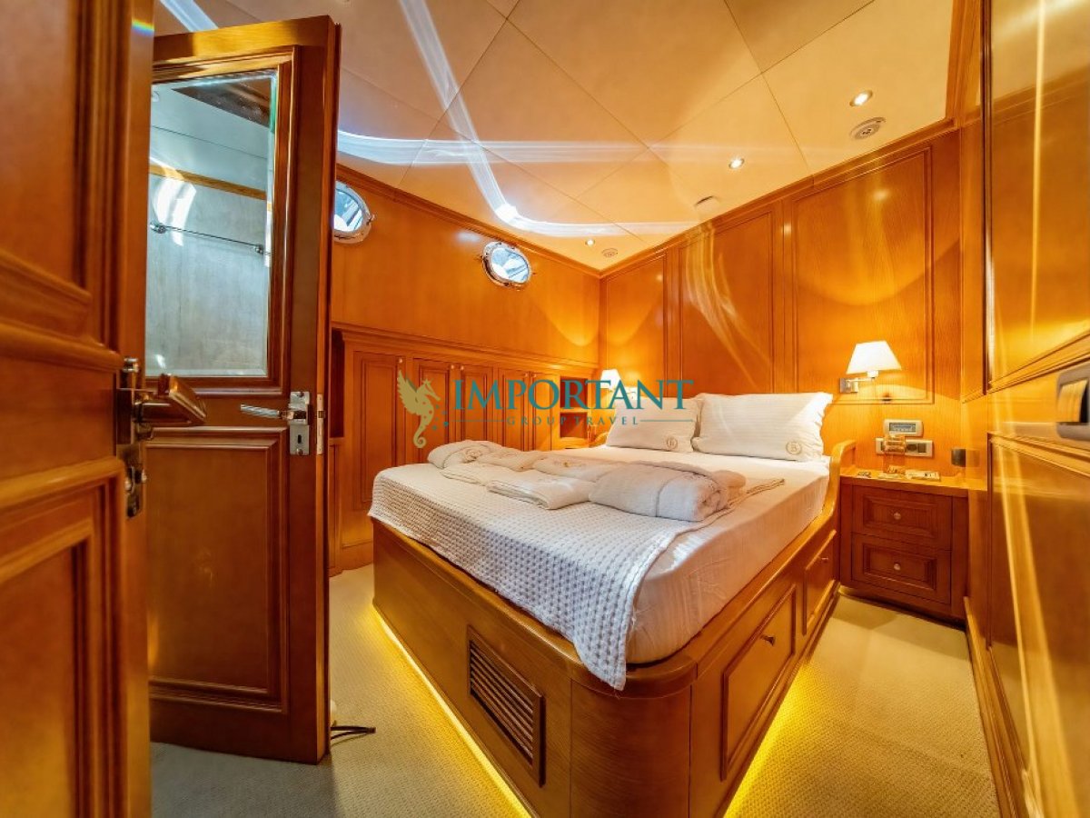 41 mt. uzunluğunda ve Bodrum merkez kalkışlı olan bu Lüks Kiralık Teknemiz 1 adet Master, 1 adet vip ve 3 adet Twin kabiniyle toplam 10 kişilik konaklama imkanı sunmaktadır.
