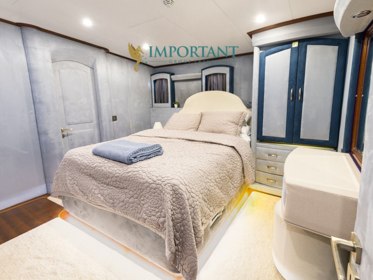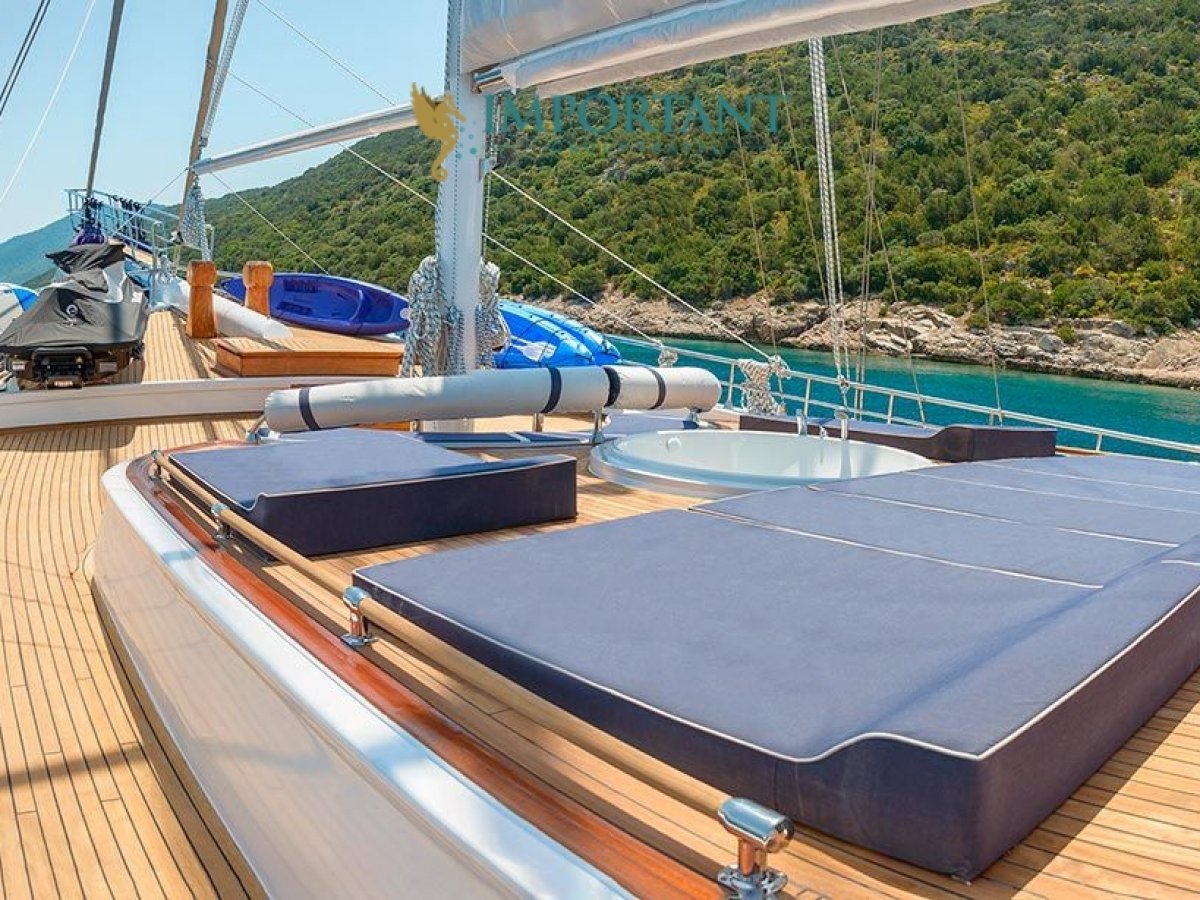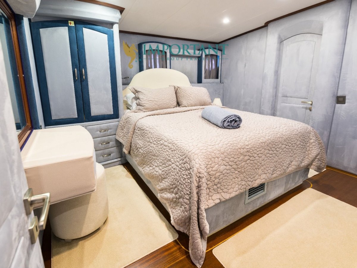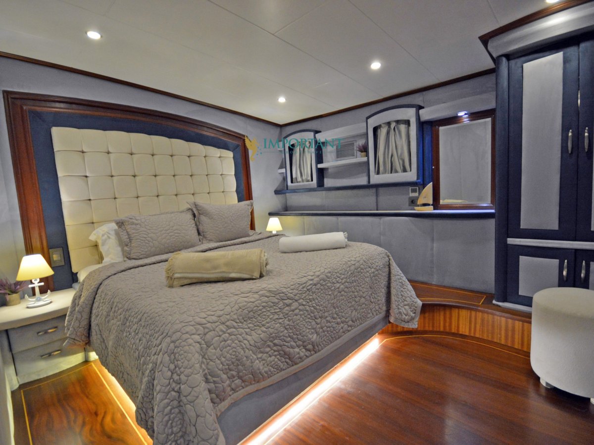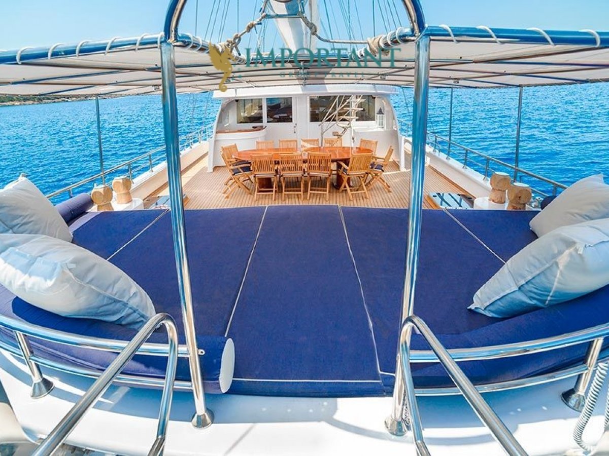 38 mt. uzunluğunda ve Bodrum merkez kalkışlı olan bu Delüks Kiralık Teknemiz 2 adet Master ve 4 adet Double kabiniyle toplam 12 kişilik konaklama imkanı sunmaktadır.
