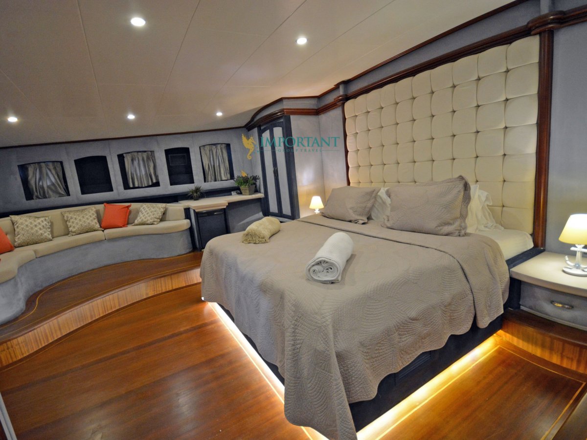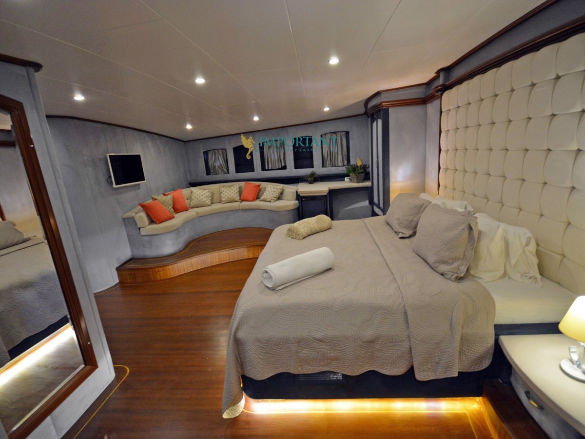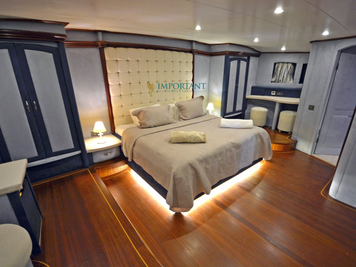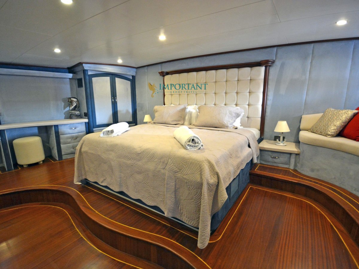 38 mt. uzunluğunda ve Bodrum merkez kalkışlı olan bu Delüks Kiralık Teknemiz 2 adet Master ve 4 adet Double kabiniyle toplam 12 kişilik konaklama imkanı sunmaktadır.