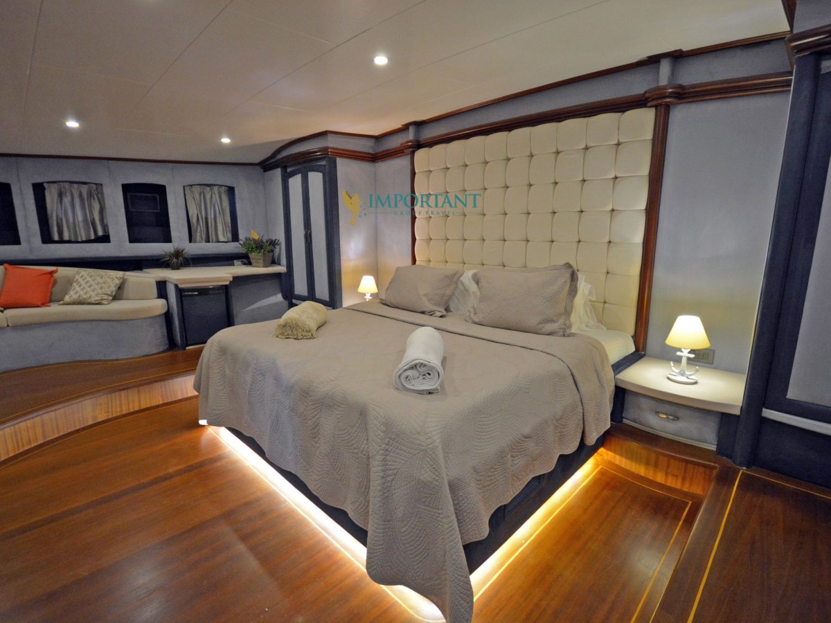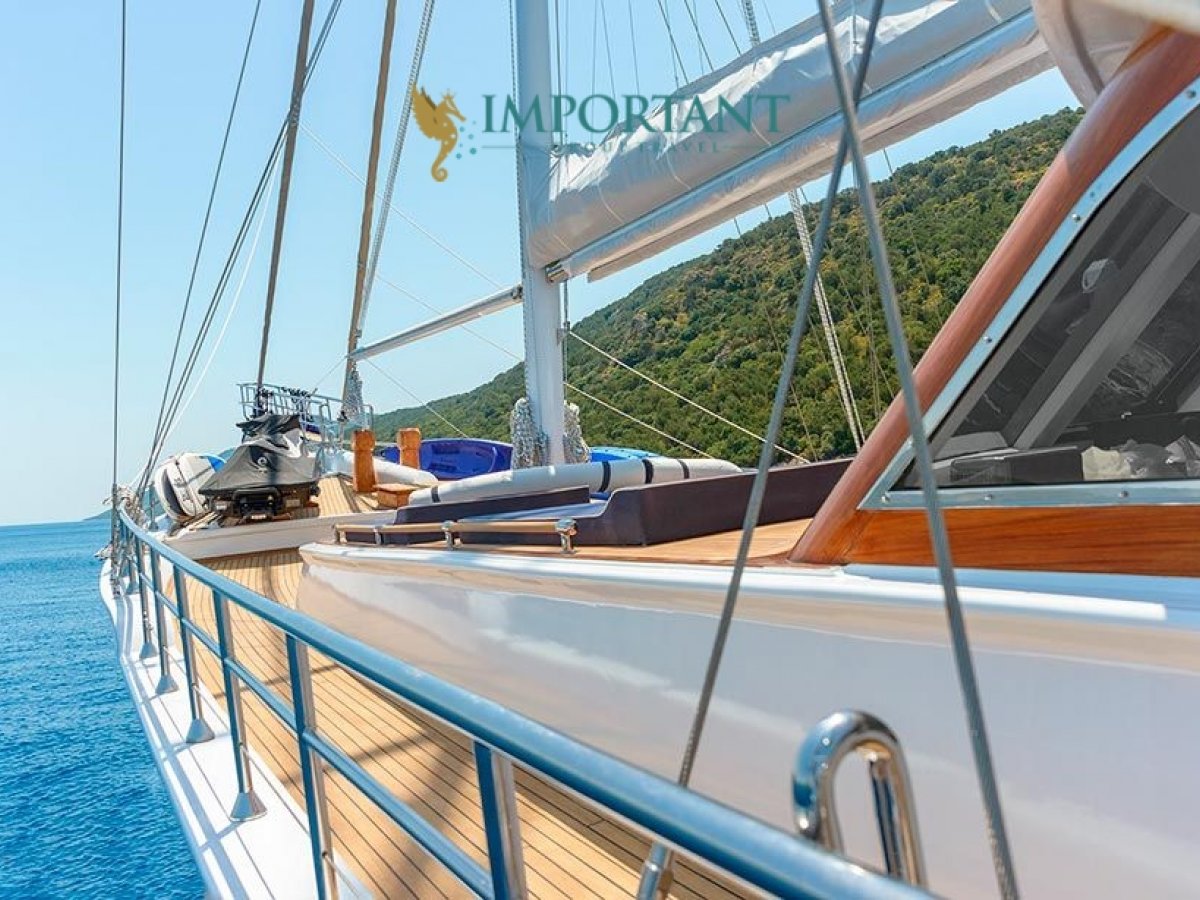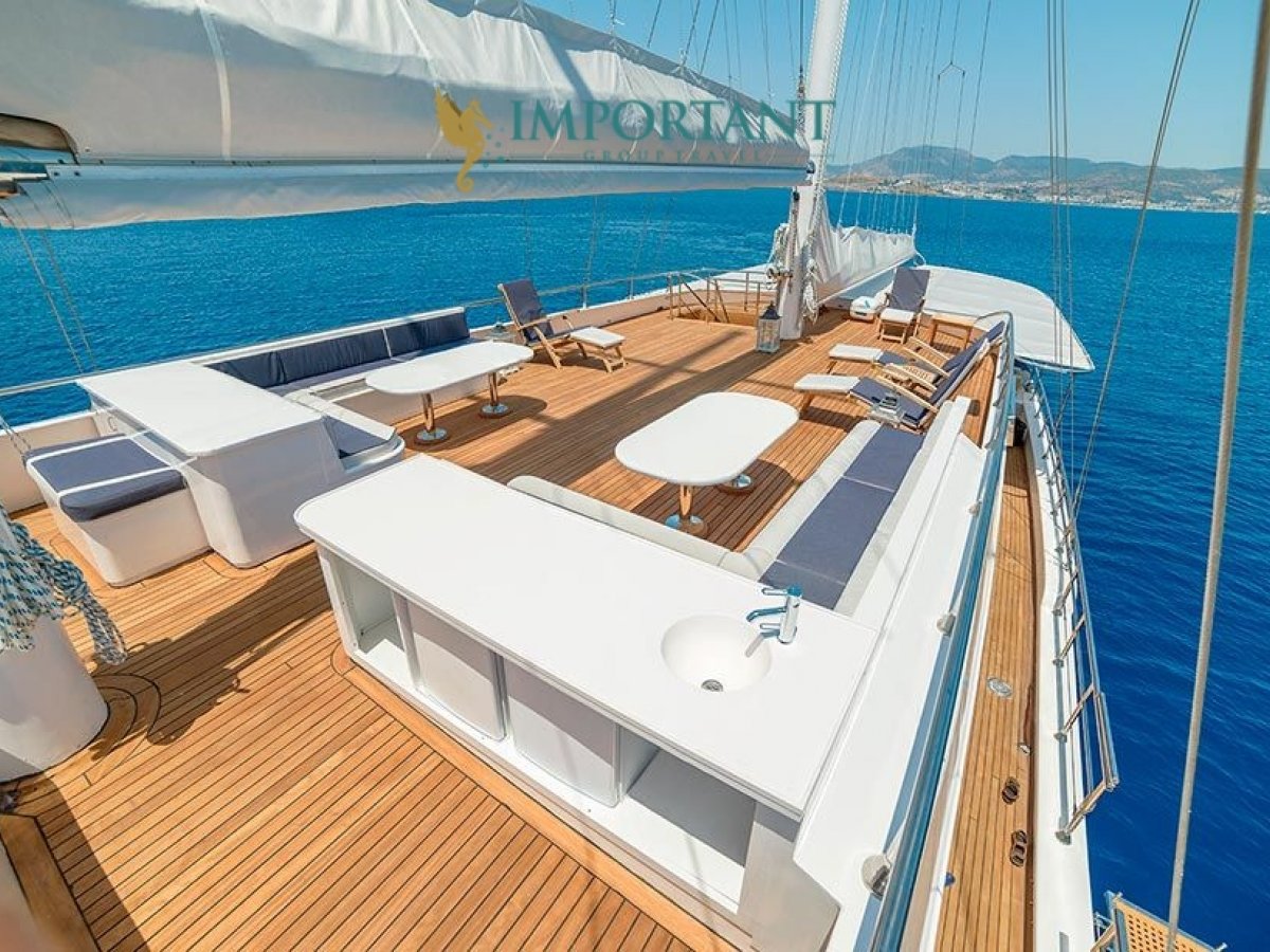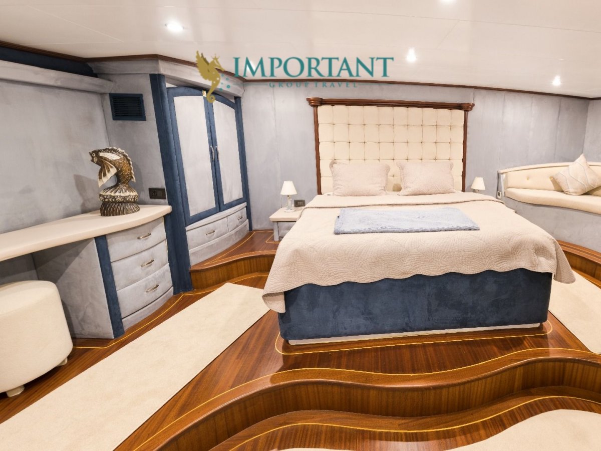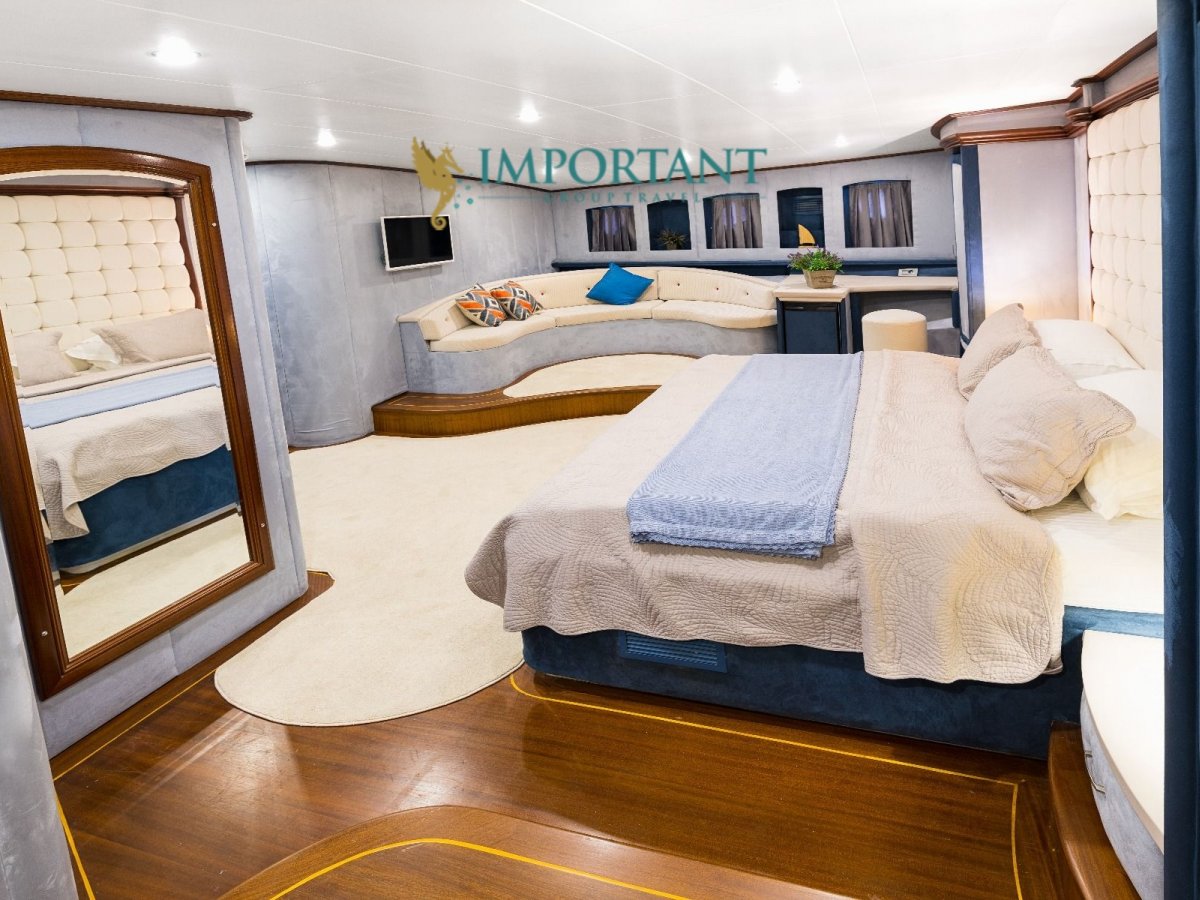 38 mt. uzunluğunda ve Bodrum merkez kalkışlı olan bu Delüks Kiralık Teknemiz 2 adet Master ve 4 adet Double kabiniyle toplam 12 kişilik konaklama imkanı sunmaktadır.