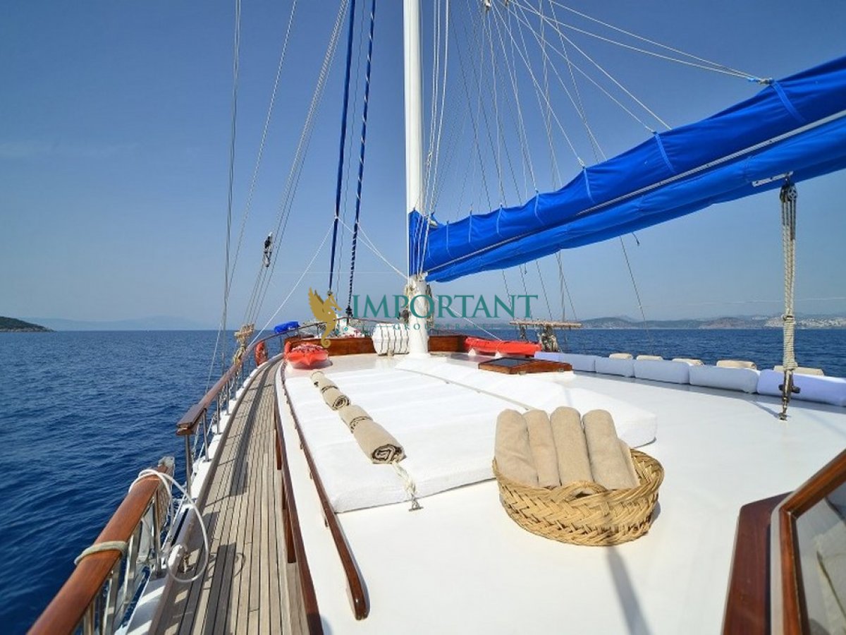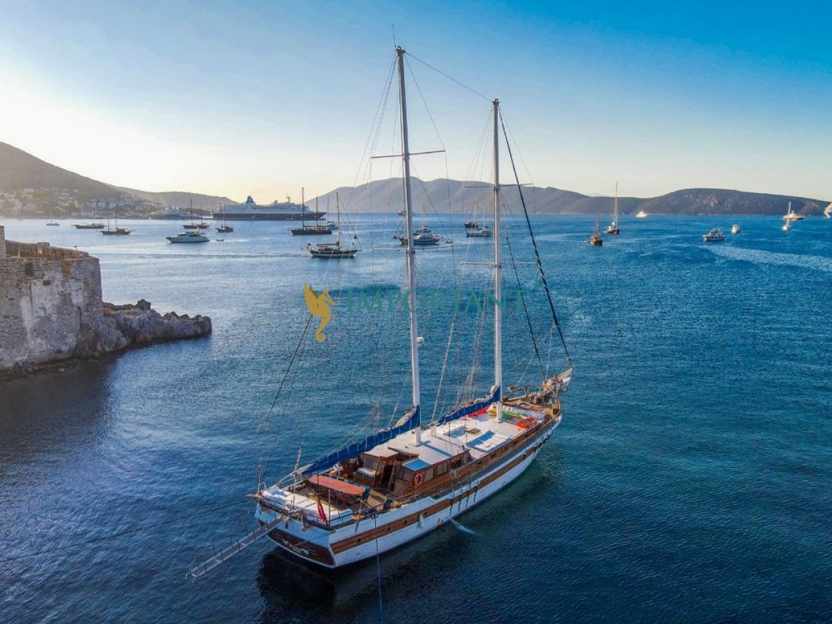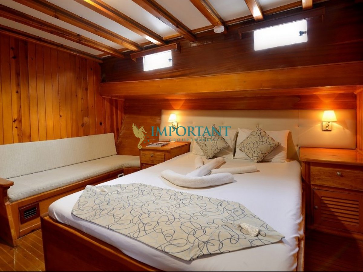 Bodrum çıkışlı 30 metre uzunluğundaki kiralık guletimiz, Ege Denizi’nin büyüleyici koylarını keşfetmeniz için harika bir fırsat sunuyor. Teknemiz, toplamda 12 kişilik konaklama kapasitesine sahip olup, 1 adet master, 3 adet çift kişilik yataklı Double ve 2 adet twin ile donatılmıştır.