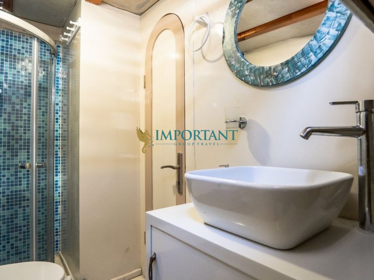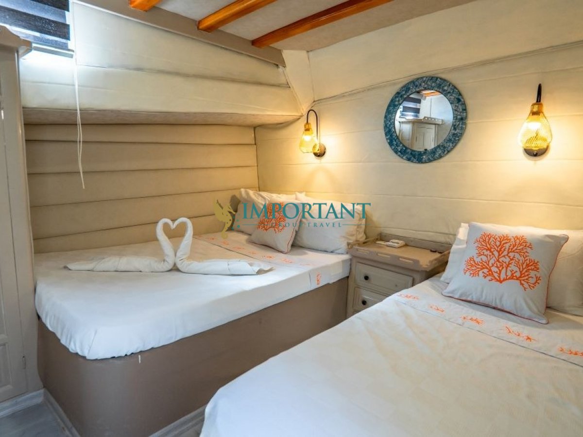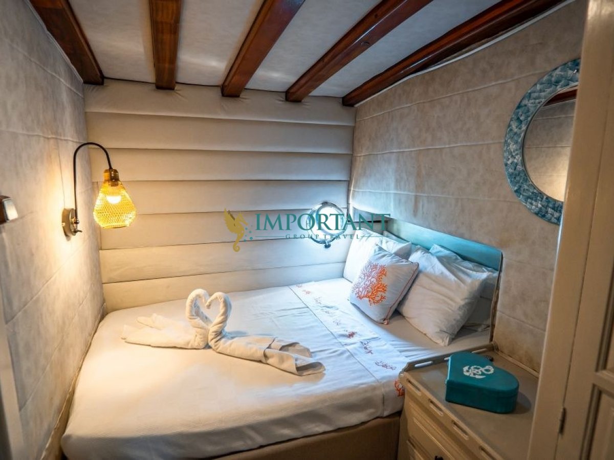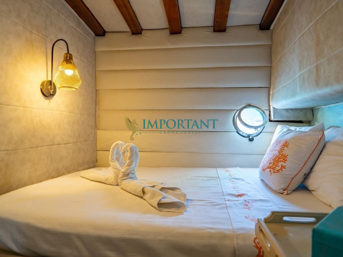 Bodrum çıkışlı bu lüks guletimizle unutulmaz bir mavi yolculuğa çıkabilirsiniz. Farklı destinasyonları tercih eden misafirlerimiz için Marmaris'in eşsiz doğal güzelliklerinin tadını çıkarabilir, Göcek’in gizli cennetlerini ziyaret edebilir veya Fethiye'nin kristal berraklığındaki sularında yüzebilir, Bozburun’un bozulmamış güzelliklerinde de zaman geçirebilirsiniz; ayrıca maceranızı Yunan Adaları’na kadar uzatabilirsiniz (Yunan Adaları için ekstra ücretler hakkında bilgi almak için bizimle iletişime geçin). Bu unutulmaz deneyimde hem evinizdeymiş gibi huzurlu hissedecek hem de Ege’nin masmavi sularında özgürlüğün tadını çıkaracaksınız.