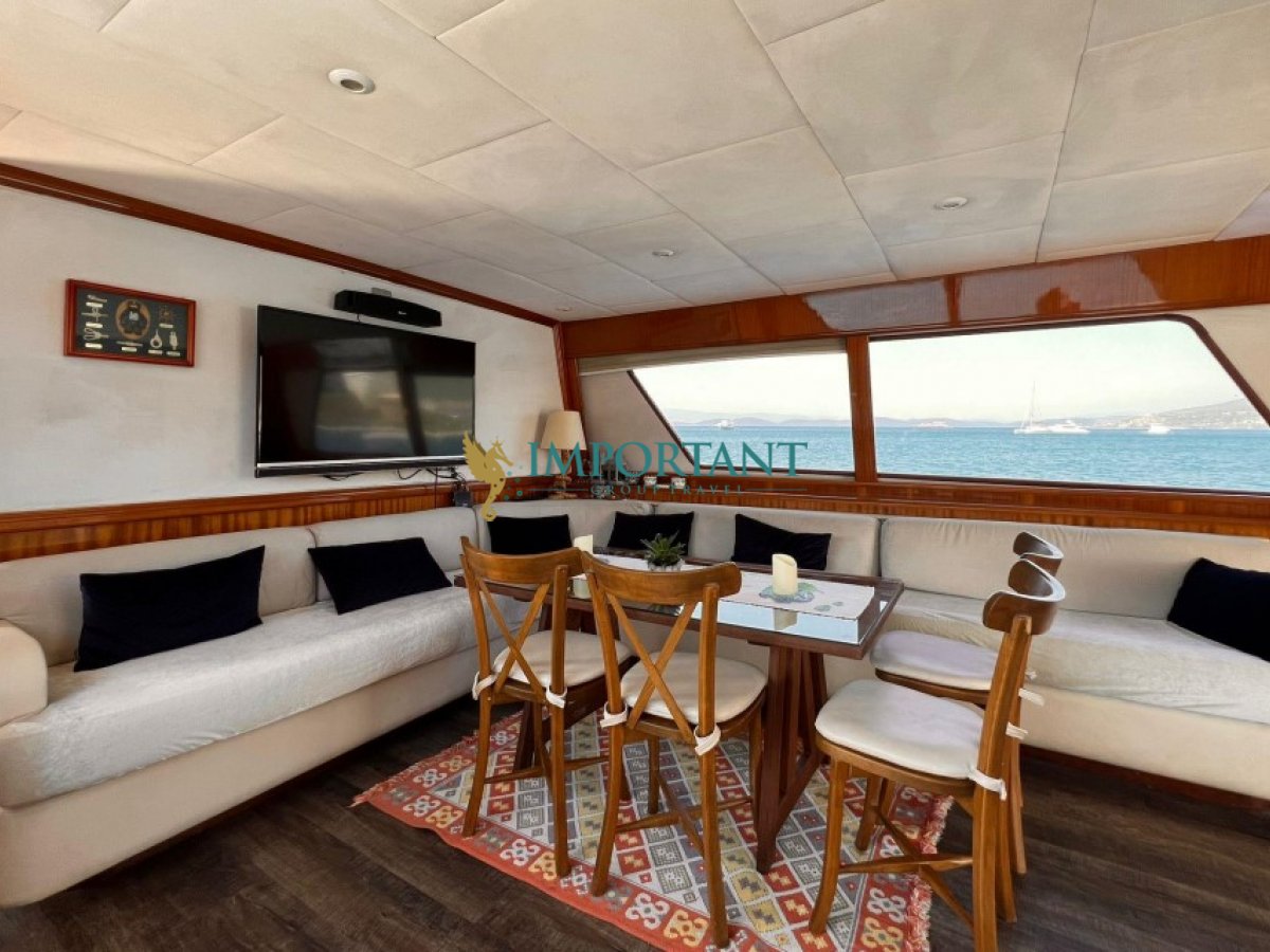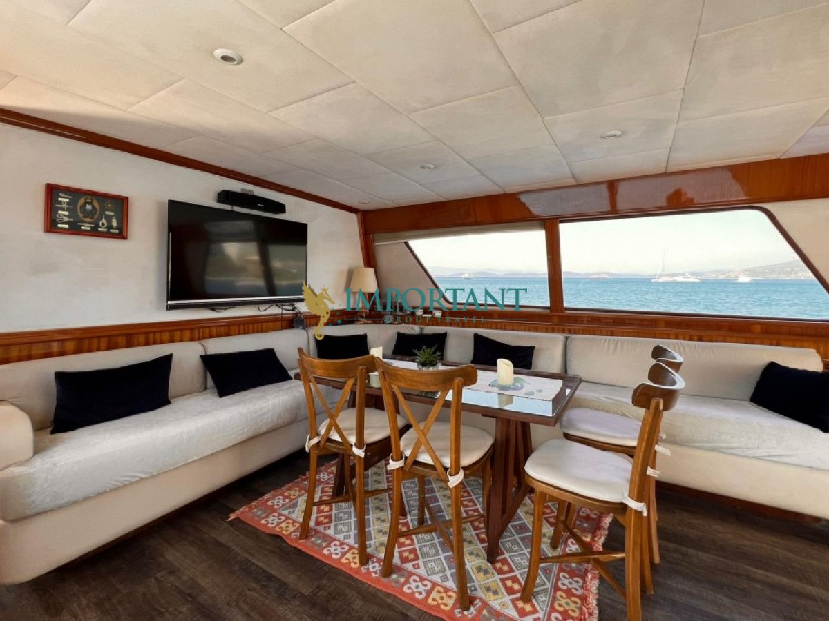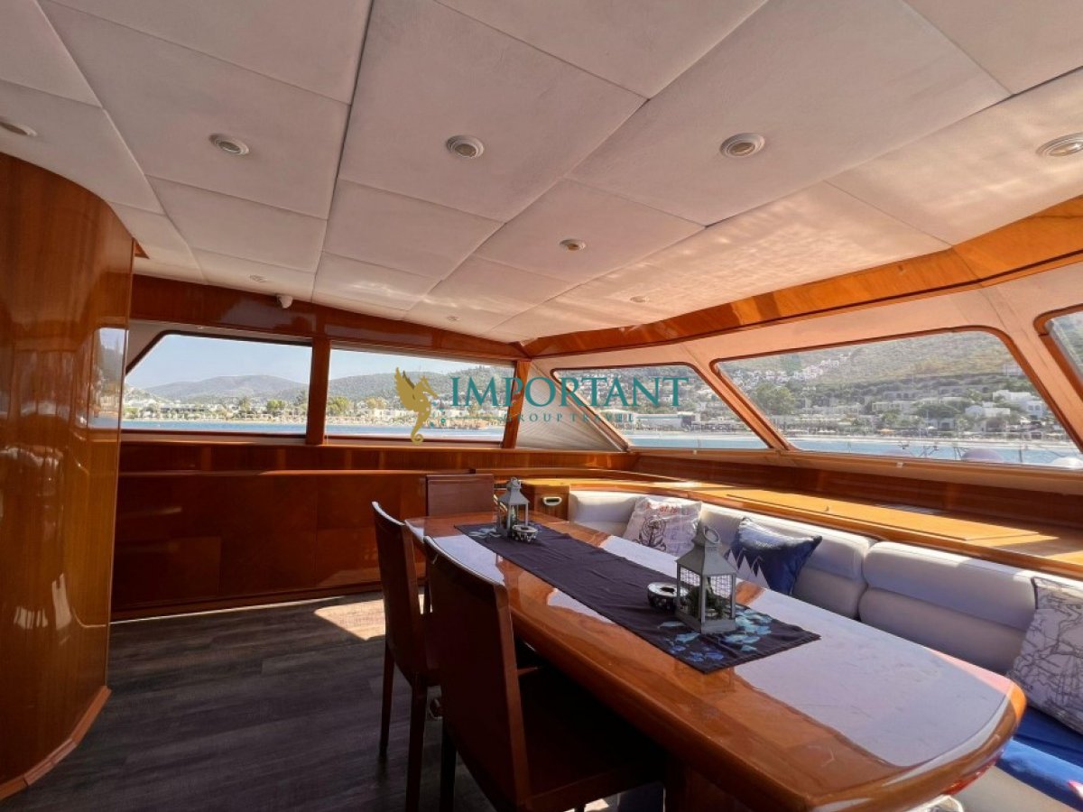Bodrum Torba çıkışlı 27 metre motoryatımız 15 kişi kapasitelidir. Yatımızın iç dizaynı misafirlerimizin tüm ihtiyacını karşılayacak şekilde dekore edilmiş olup, salonda ve güvertede yemek masalarına ve tam teşekküllü bir mutfağa sahiptir.