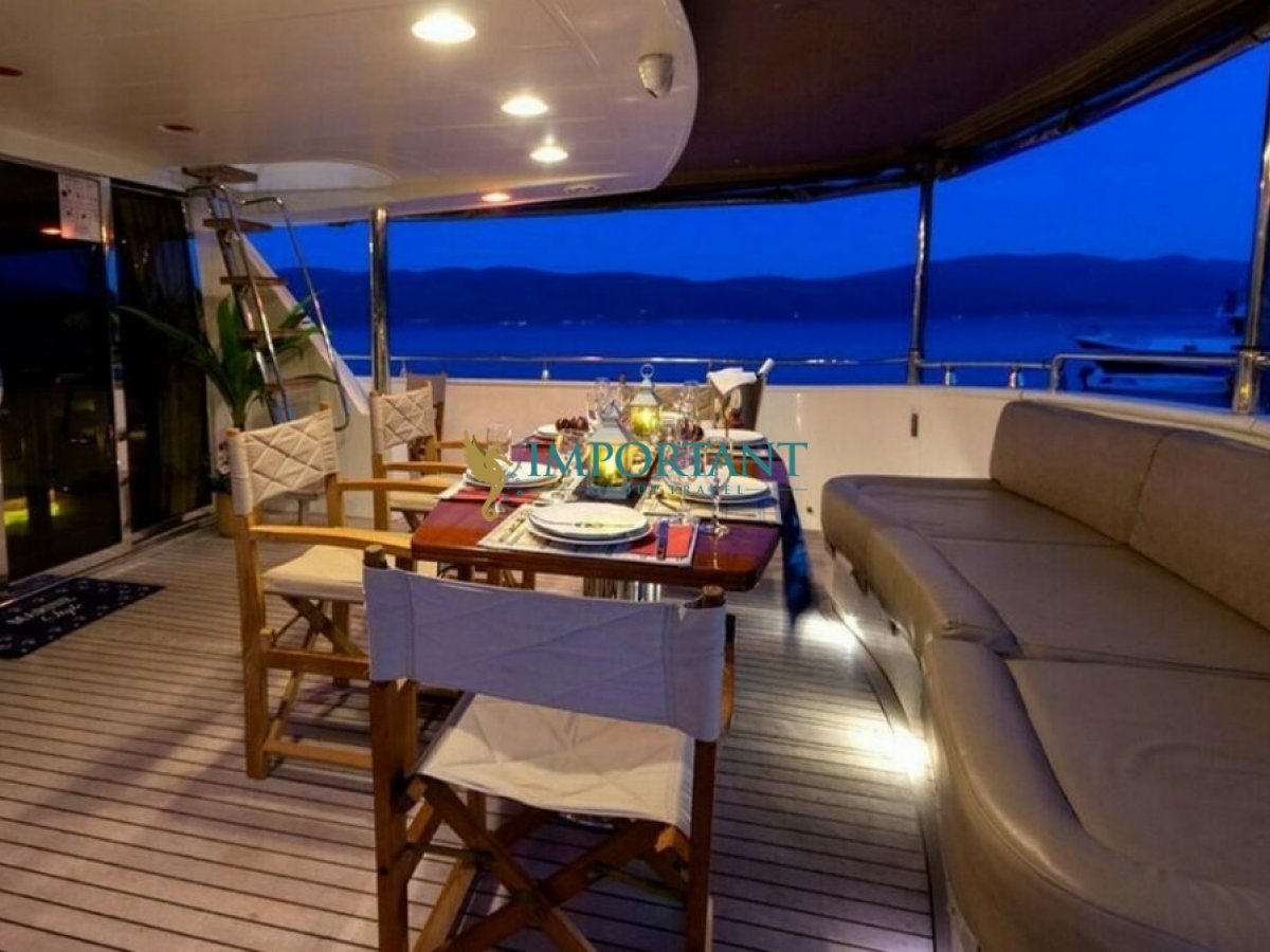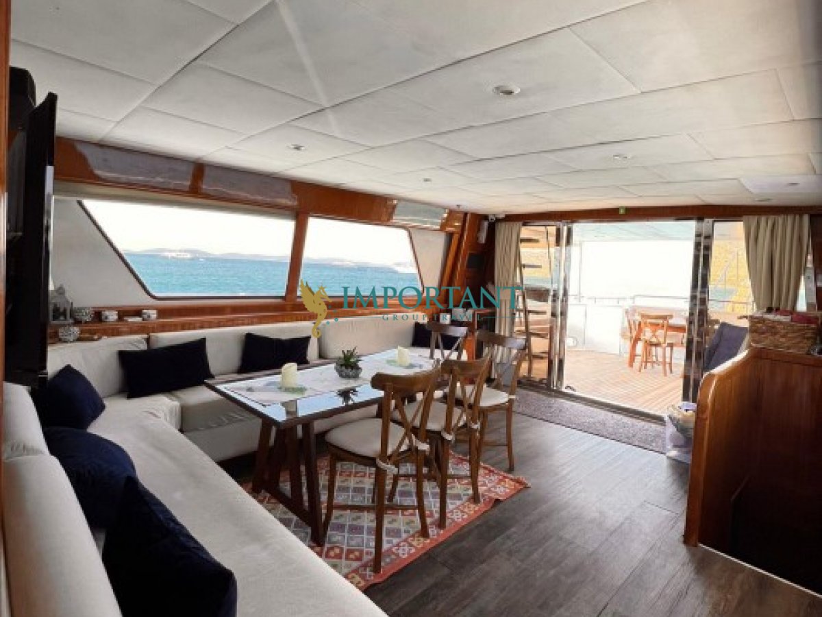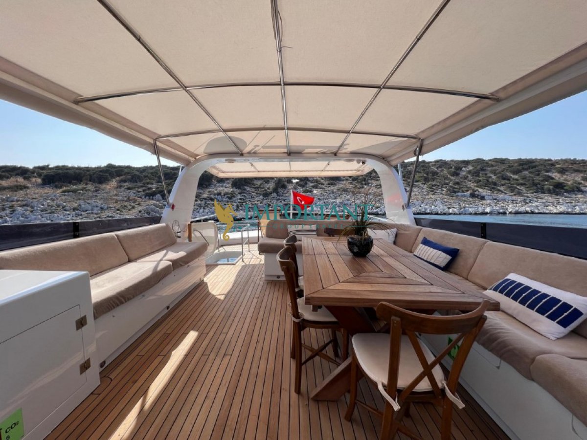 Bodrum Torba çıkışlı 27 metre motoryatımız 15 kişi kapasitelidir. Yatımızın iç dizaynı misafirlerimizin tüm ihtiyacını karşılayacak şekilde dekore edilmiş olup, salonda ve güvertede yemek masalarına ve tam teşekküllü bir mutfağa sahiptir.