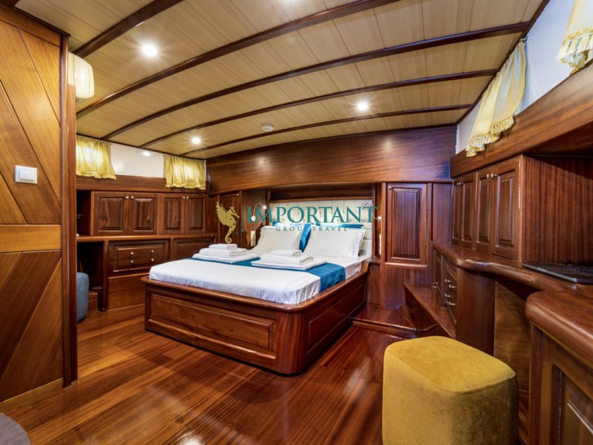 Fethiye çıkışlı 22 metre uzunluğundaki 3 kabinli kiralık guletimiz, Ege Denizi’nin büyüleyici koylarını keşfetmeniz için harika bir fırsat sunuyor. Teknemiz, toplamda 6 kişilik konaklama kapasitesine sahip olup, 1 aset Master ve 2 adet double kabin ile donatılmıştır.