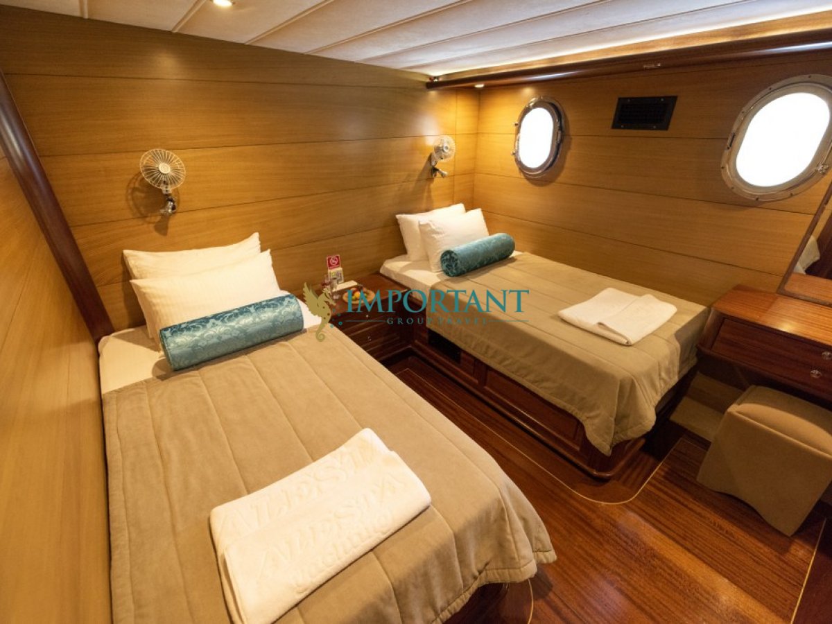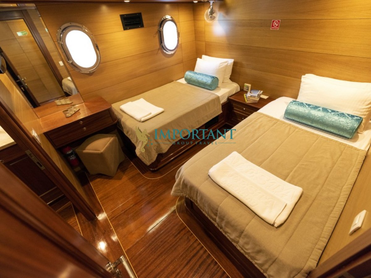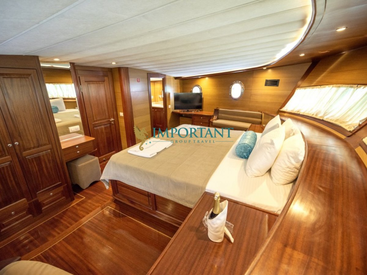 Fethiye çıkışlı bu lüks guletimizle unutulmaz bir mavi yolculuğa çıkabilirsiniz. Farklı destinasyonları tercih eden misafirlerimiz için Bodrum' un tarihi koylarını keşfedin, Göcek ’in gizli cennetlerini ziyaret edin veya Marmaris' in eşsiz doğal güzelliklerinin tadını çıkartın, Bozburun’ un bozulmamış güzelliklerinde ; ayrıca maceranızı Yunan Adaları’ na kadar uzanabilirsiniz (Yunan Adaları için ekstra ücretler hakkında bilgi almak için bizimle iletişime geçin). Bu unutulmaz deneyimde hem evinizdeymiş gibi huzurlu hissedecek hem de Ege’nin masmavi sularında özgürlüğün tadını çıkaracaksınız