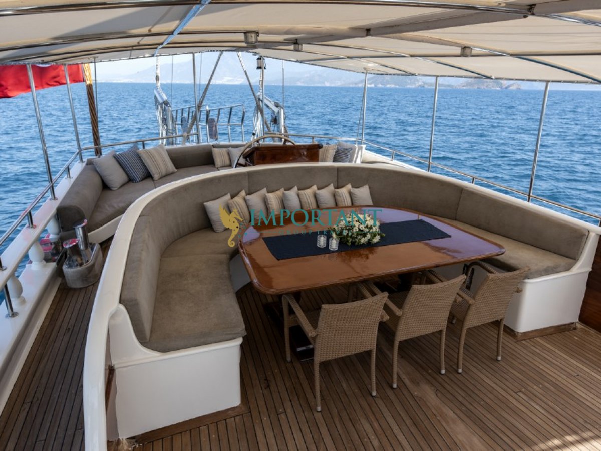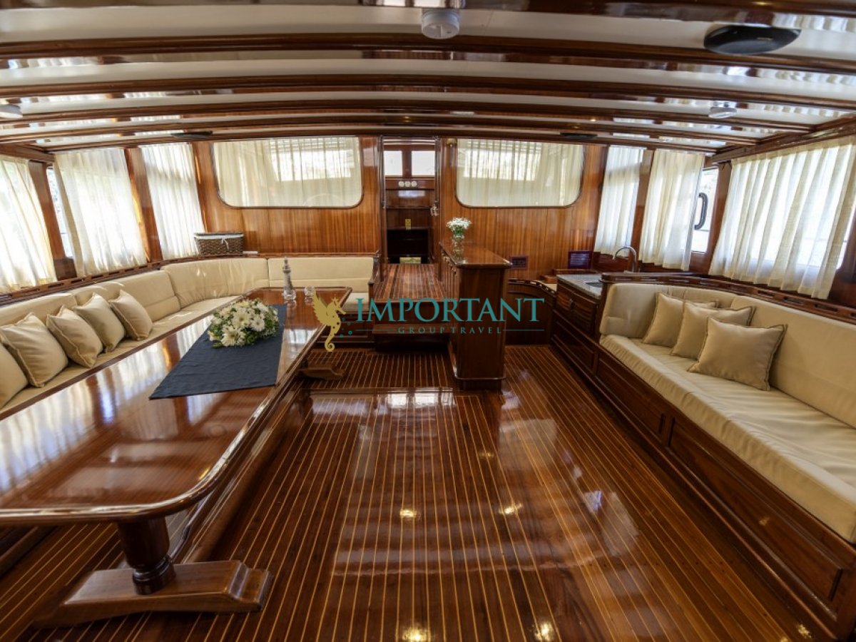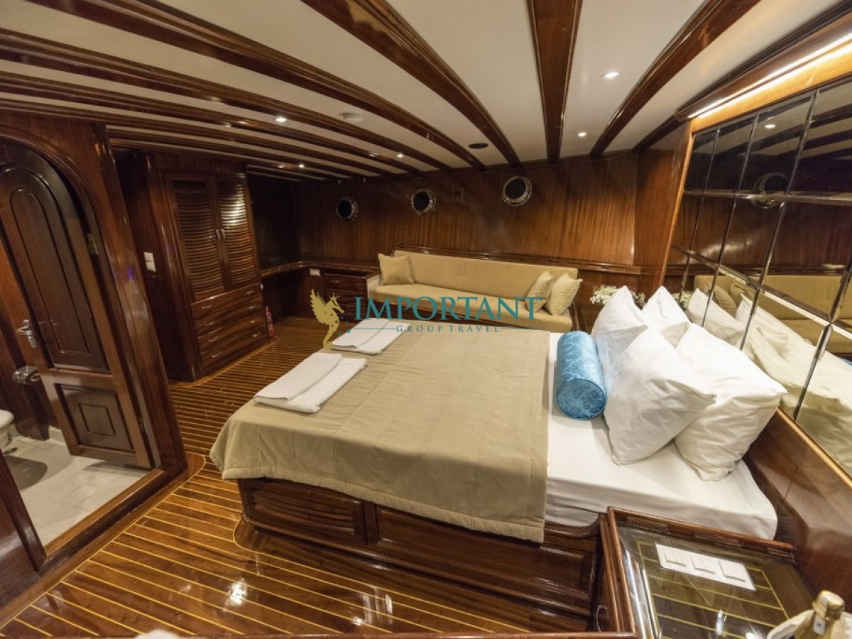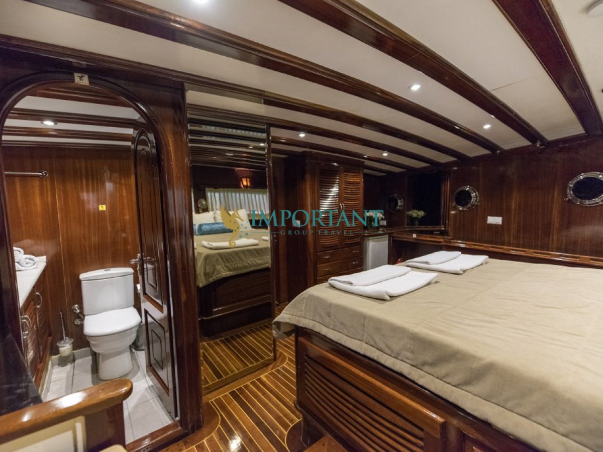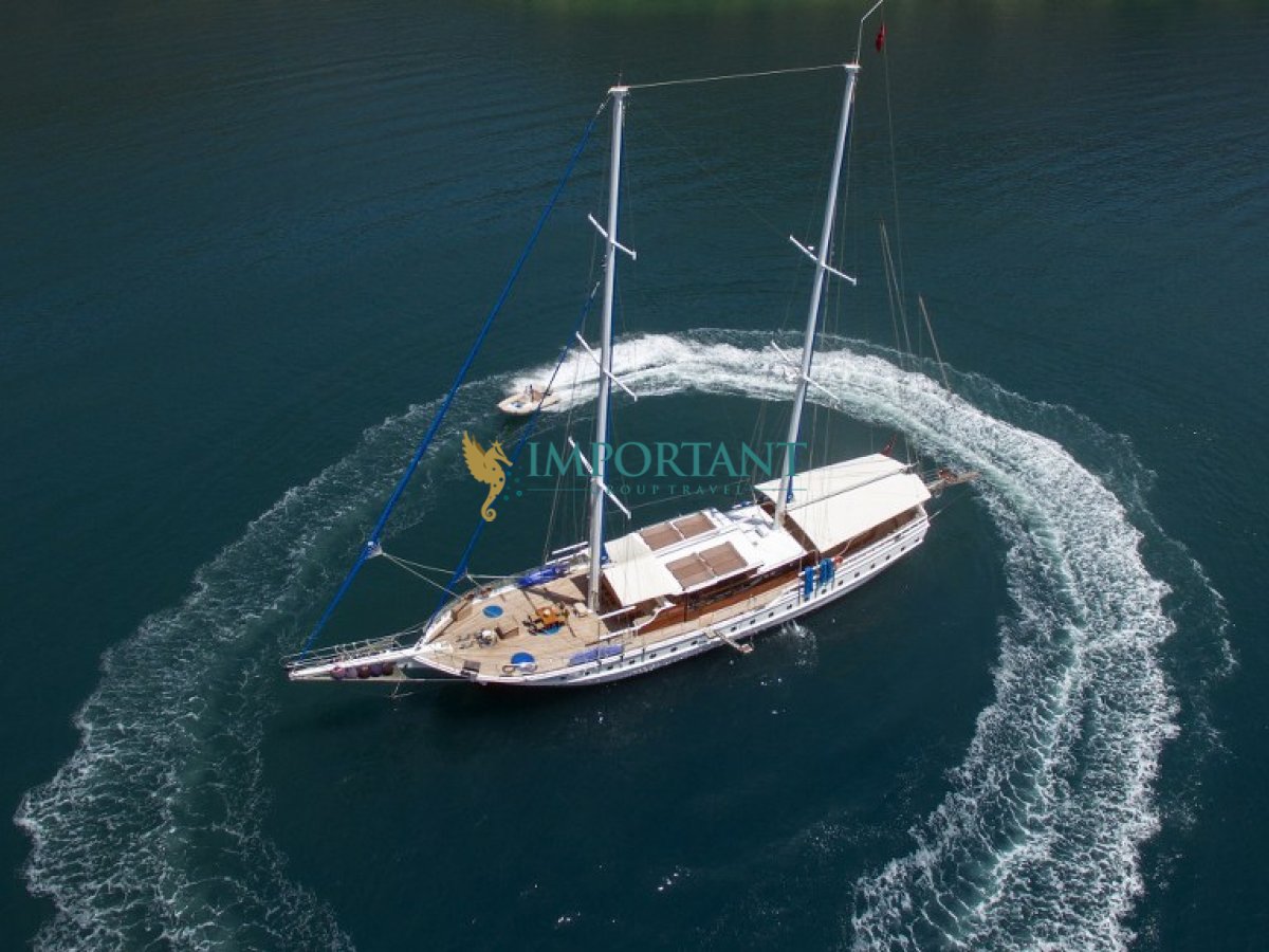 Fethiye çıkışlı bu lüks guletimizle unutulmaz bir mavi yolculuğa çıkabilirsiniz. Farklı destinasyonları tercih eden misafirlerimiz için Bodrum' un tarihi koylarını keşfedin, Göcek ’in gizli cennetlerini ziyaret edin veya Marmaris' in eşsiz doğal güzelliklerinin tadını çıkartın, Bozburun’ un bozulmamış güzelliklerinde ; ayrıca maceranızı Yunan Adaları’ na kadar uzanabilirsiniz (Yunan Adaları için ekstra ücretler hakkında bilgi almak için bizimle iletişime geçin). Bu unutulmaz deneyimde hem evinizdeymiş gibi huzurlu hissedecek hem de Ege’nin masmavi sularında özgürlüğün tadını çıkaracaksınız