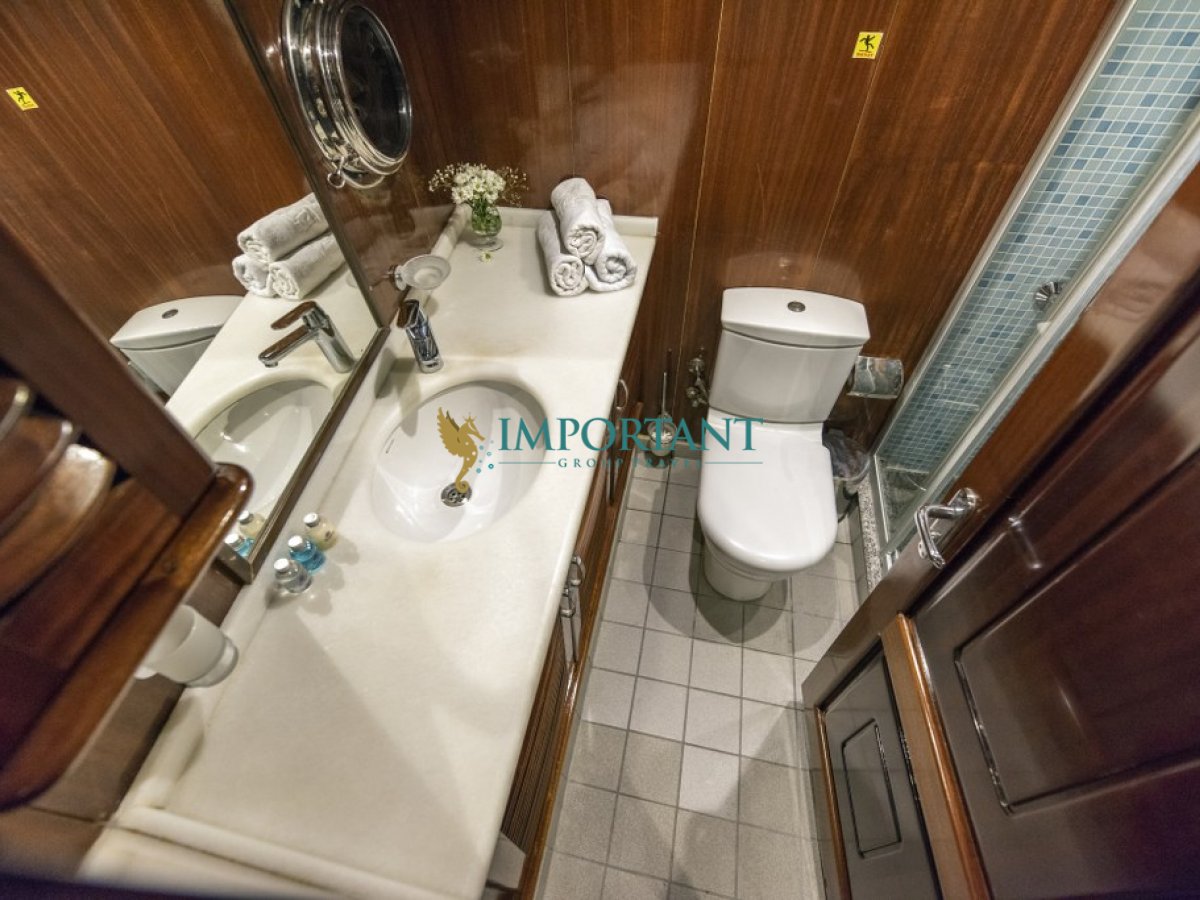 İç dizaynı, misafirlerimizin ihtiyaçlarını karşılamak üzere özenle dekore edilmiştir. Geniş salonunda ve güvertesinde yer alan yemek masaları, sevdiklerinizle birlikte keyifli yemekler yiyebileceğiniz alanlar sunmaktadır. Tam donanımlı mutfağı, teknede geçirdiğiniz süre boyunca tüm gereksinimlerinizi karşılar. Her kabinde duş, wc ve klima bulunmaktadır; böylece denizde bile evinizin rahatlığını hissedebilirsiniz.