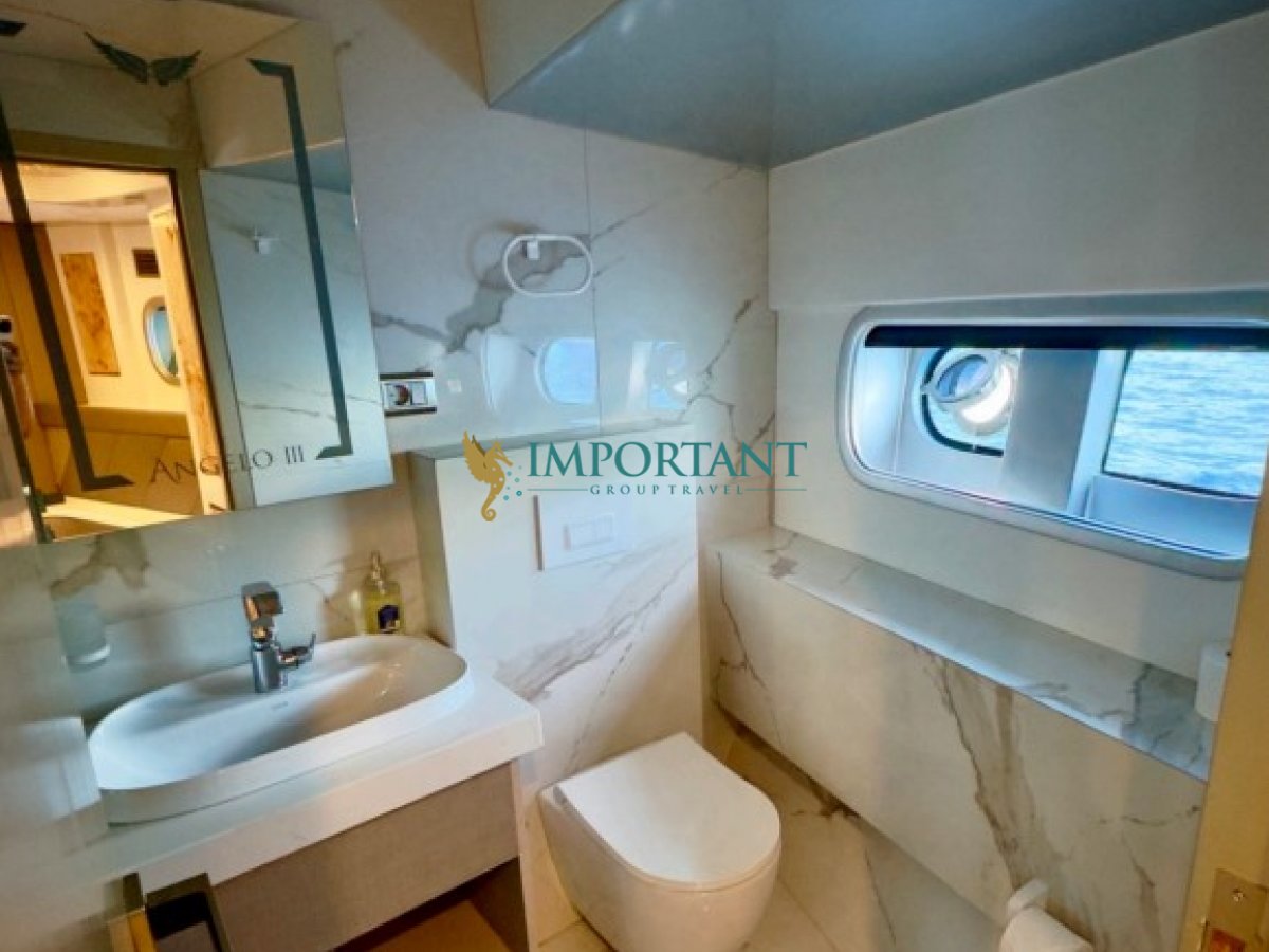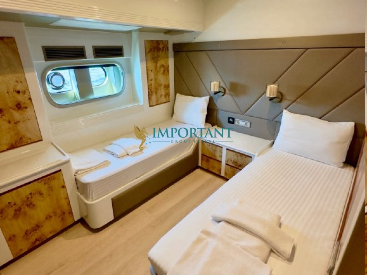 İç dizaynı, misafirlerimizin ihtiyaçlarını karşılamak üzere özenle dekore edilmiştir. Geniş salonunda ve güvertesinde yer alan yemek masaları, sevdiklerinizle birlikte keyifli yemekler yiyebileceğiniz alanlar sunmaktadır. Tam donanımlı mutfağı, teknede geçirdiğiniz süre boyunca tüm gereksinimlerinizi karşılar. Her kabinde duş, wc ve klima (24 saat) bulunmaktadır; böylece denizde bile evinizin rahatlığını hissedebilirsiniz.