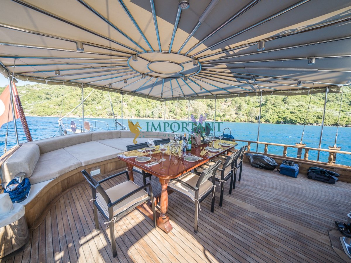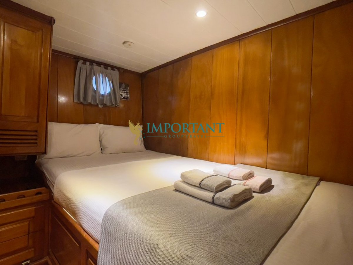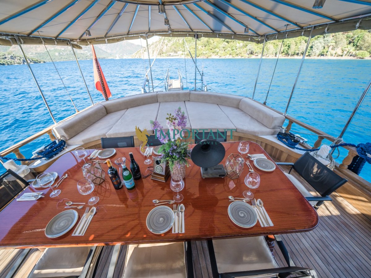 22 metre uzunluğundaki, Marmaris çıkışlı bu kiralık guletimiz, Ege Denizi’nin büyüleyici koylarını ve masmavi sularını keşfetmeniz için eşsiz bir fırsat sunuyor. Teknemiz 2 adet master ve 2 adet double kabini ile toplamda 8 kişilik konaklama kapasitesine sahiptir.
