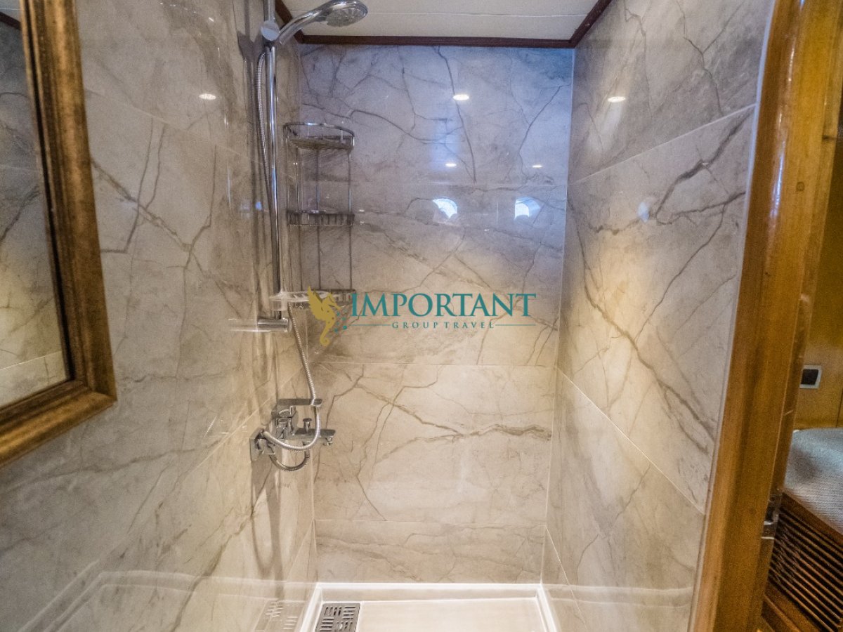 İç dizaynı, misafirlerimizin ihtiyaçlarını karşılamak üzere özenle dekore edilmiştir. Geniş salonunda ve güvertesinde yer alan yemek masaları, sevdiklerinizle birlikte keyifli yemekler yiyebileceğiniz alanlar sunmaktadır. Tam donanımlı mutfağı, teknede geçirdiğiniz süre boyunca tüm gereksinimlerinizi karşılar. Her kabinde duş, wc ve klima (8 saat kullanım) bulunmaktadır. Marmaris çıkışlı bu guletimizle unutulmaz bir mavi yolculuğa çıkabilir, denizde bile evinizin rahatlığını hissedebilirsiniz.