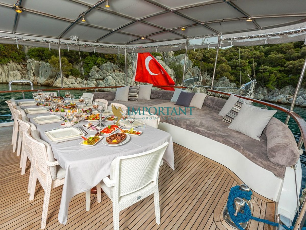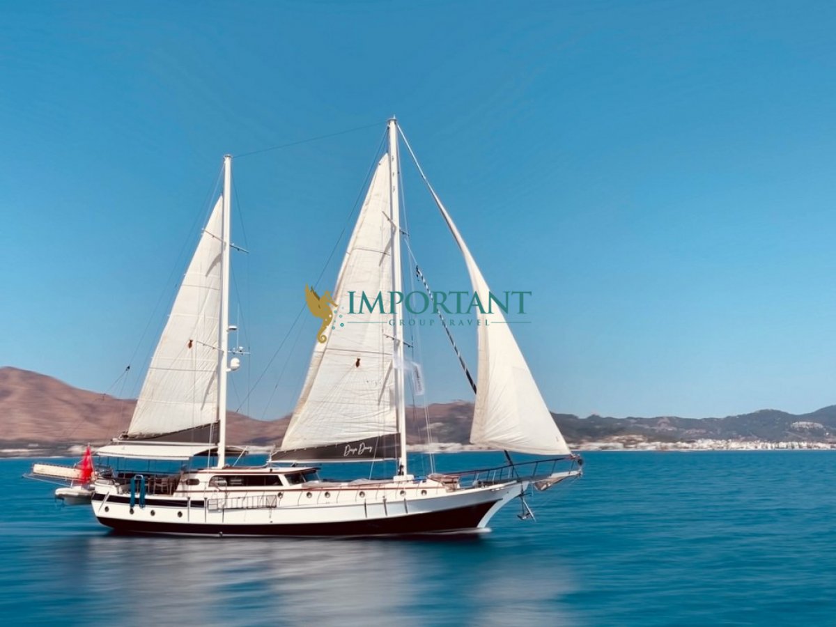 Marmaris çıkışlı bu guletimizle unutulmaz bir mavi yolculuğa çıkabilirsiniz. Farklı destinasyonları tercih eden misafirlerimiz için Bodrum'un tarihi koylarını keşfedin, Göcek’in gizli cennetlerini ziyaret edin, Fethiye'nin kristal berraklığındaki sularında yüzün ya da Bozburun’un bozulmamış güzelliklerinde huzur bulun; hatta maceranızı Yunan Adaları’na kadar uzatabilirsiniz! Bu unutulmaz deneyimde hem evinizdeymiş gibi huzurlu hissedecek hem de Ege’nin masmavi sularında özgürlüğün tadını çıkaracaksınız.