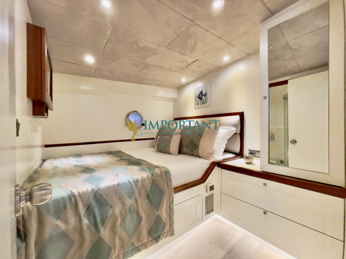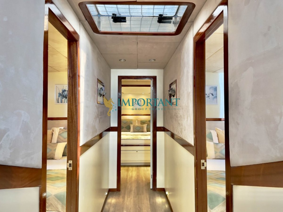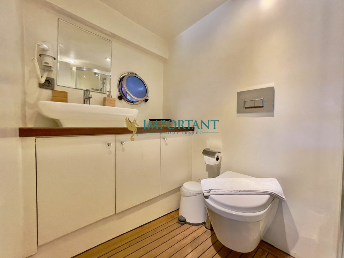 24 metre uzunluğundaki, Marmaris çıkışlı bu özel gulet, Ege Denizi’nin büyüleyici koylarını ve masmavi sularını keşfetmeniz için eşsiz bir fırsat sunuyor. 1 adet master, 2 adet twin ve 2 adet çift kişilik double kabini ile toplamda 10 kişilik konaklama kapasitesine sahip olan teknemiz, konfor ve lüksü bir arada sunmak üzere tasarlanmıştır.