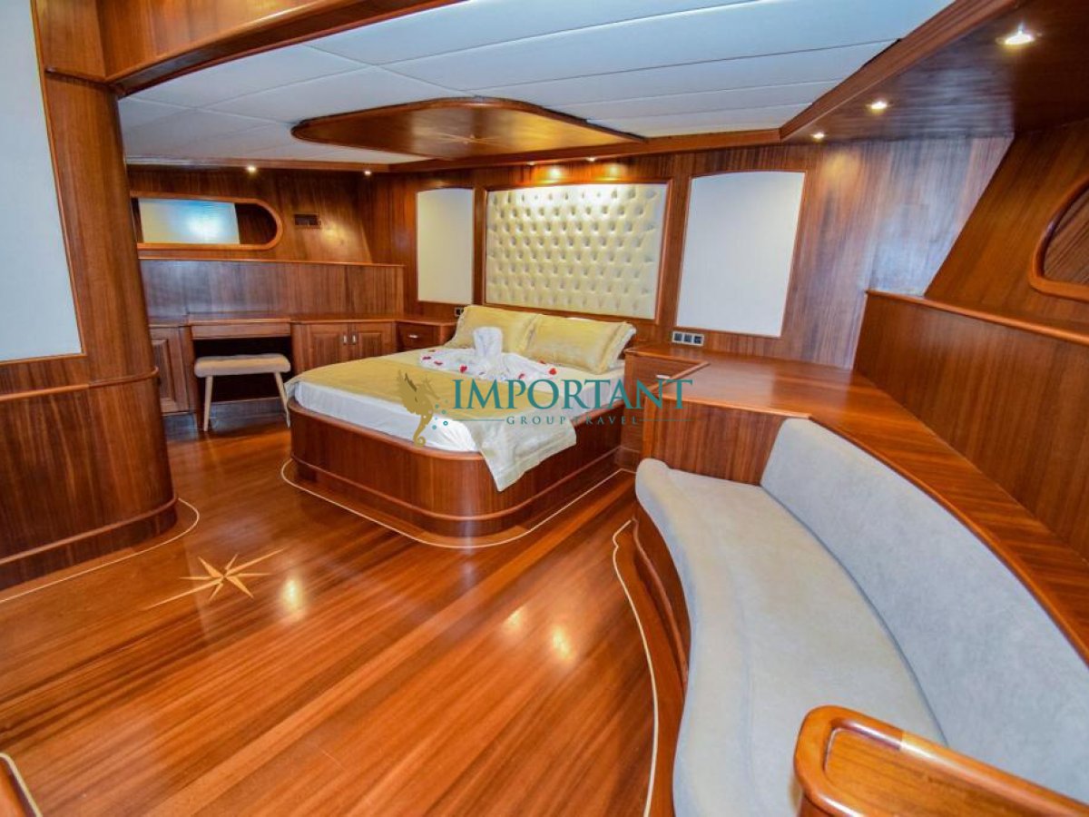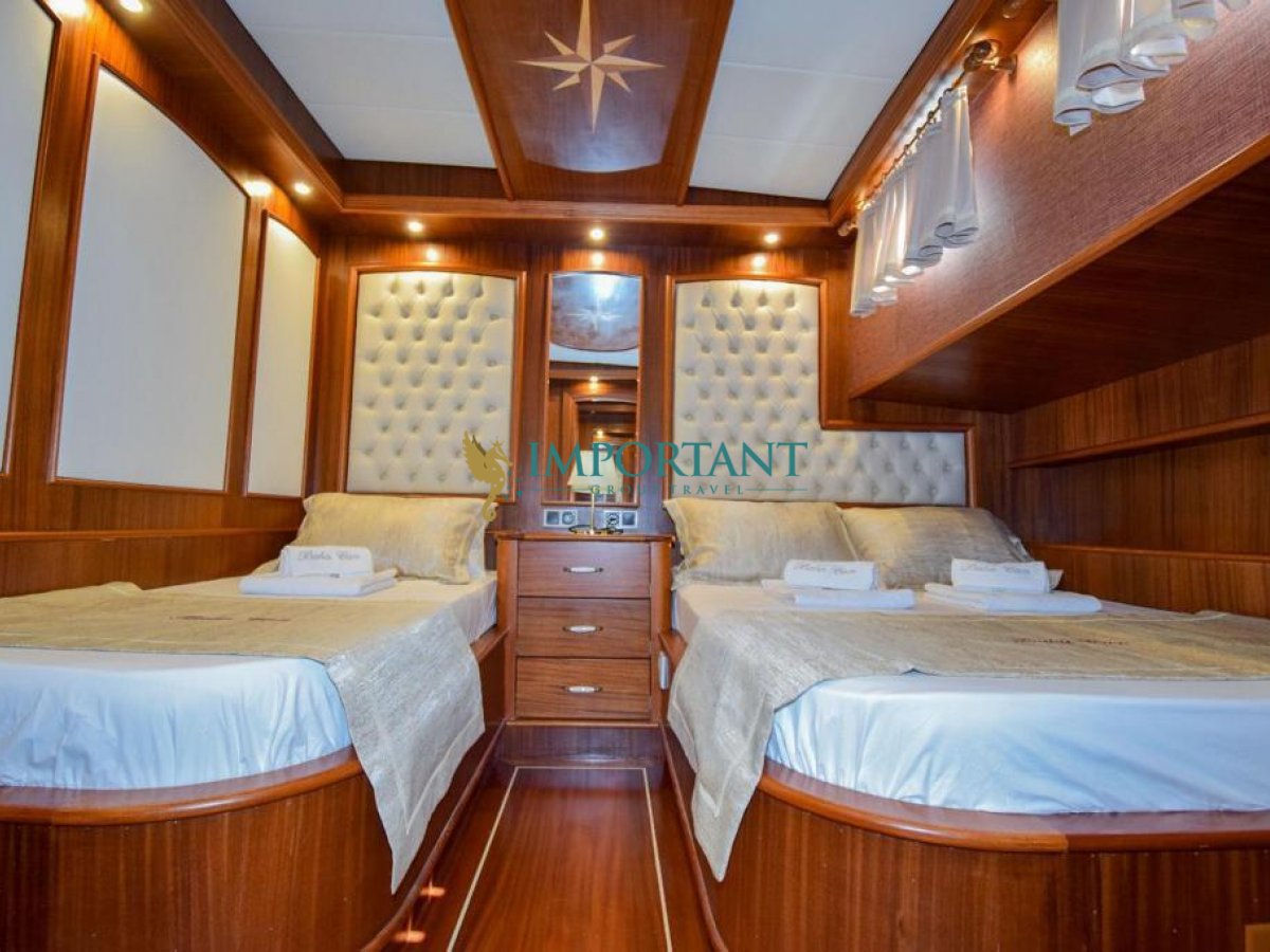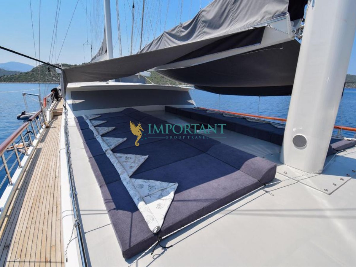 Marmaris çıkışlı bu lüks guletimizle unutulmaz bir mavi yolculuğa çıkabilirsiniz. Farklı destinasyonları tercih eden misafirlerimiz için Bodrum' un tarihi koylarını keşfedin, Göcek ’in gizli cennetlerini ziyaret edin veya Fethiye' nin kristal berraklığındaki sularında yüzün, Bozburun’ un bozulmamış güzelliklerinde ; ayrıca maceranızı Yunan Adaları’ na kadar uzanabilirsiniz . Bu unutulmaz deneyimde hem evinizdeymiş gibi huzurlu hissedecek hem de Ege’nin masmavi sularında özgürlüğün tadını çıkaracaksınız.