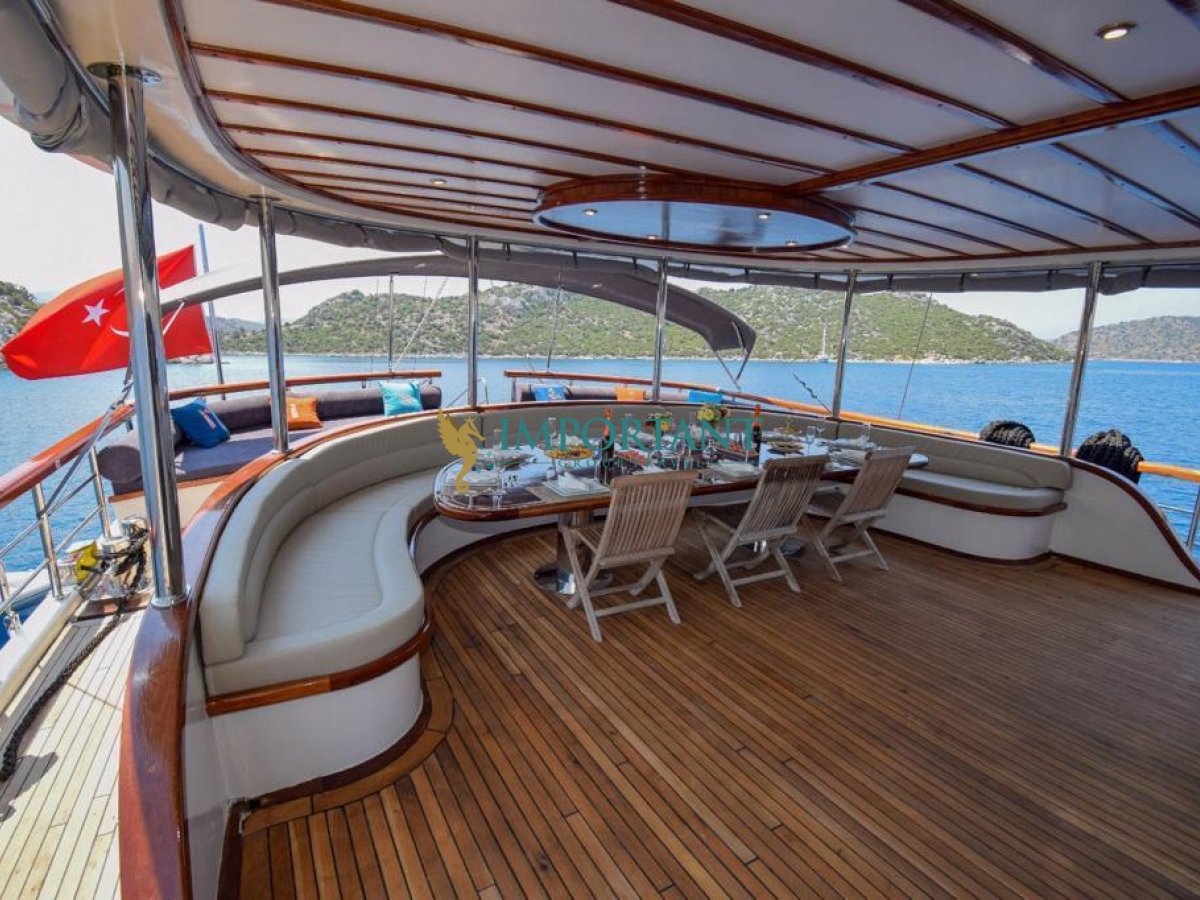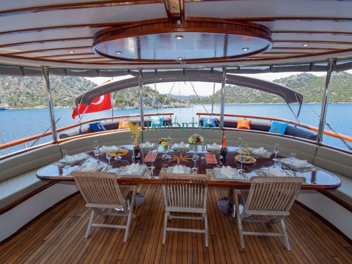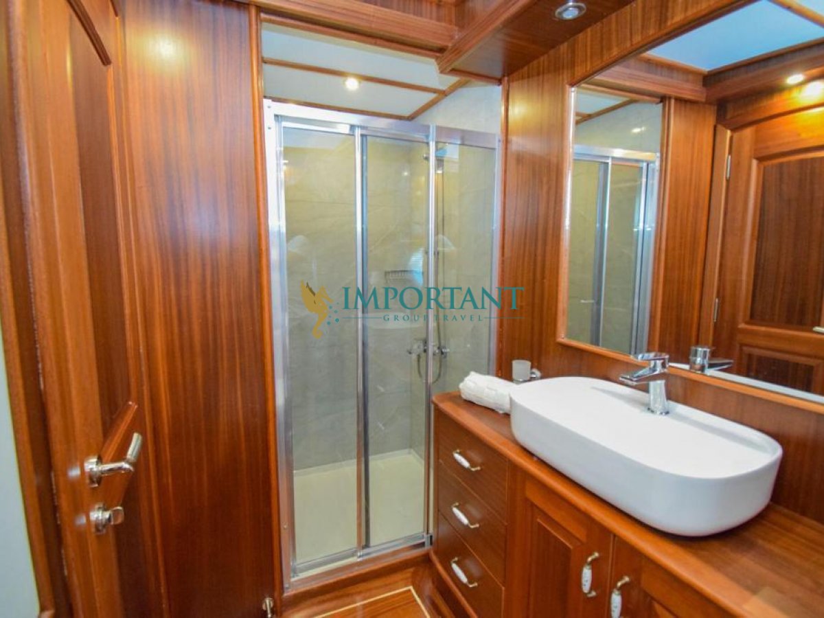 Marmaris çıkışlı bu lüks guletimizle unutulmaz bir mavi yolculuğa çıkabilirsiniz. Farklı destinasyonları tercih eden misafirlerimiz için Bodrum' un tarihi koylarını keşfedin, Göcek ’in gizli cennetlerini ziyaret edin veya Fethiye' nin kristal berraklığındaki sularında yüzün, Bozburun’ un bozulmamış güzelliklerinde ; ayrıca maceranızı Yunan Adaları’ na kadar uzanabilirsiniz . Bu unutulmaz deneyimde hem evinizdeymiş gibi huzurlu hissedecek hem de Ege’nin masmavi sularında özgürlüğün tadını çıkaracaksınız.