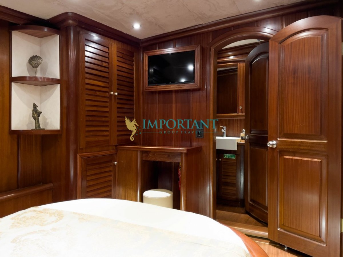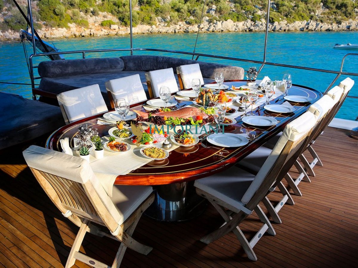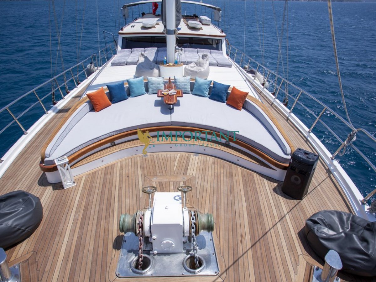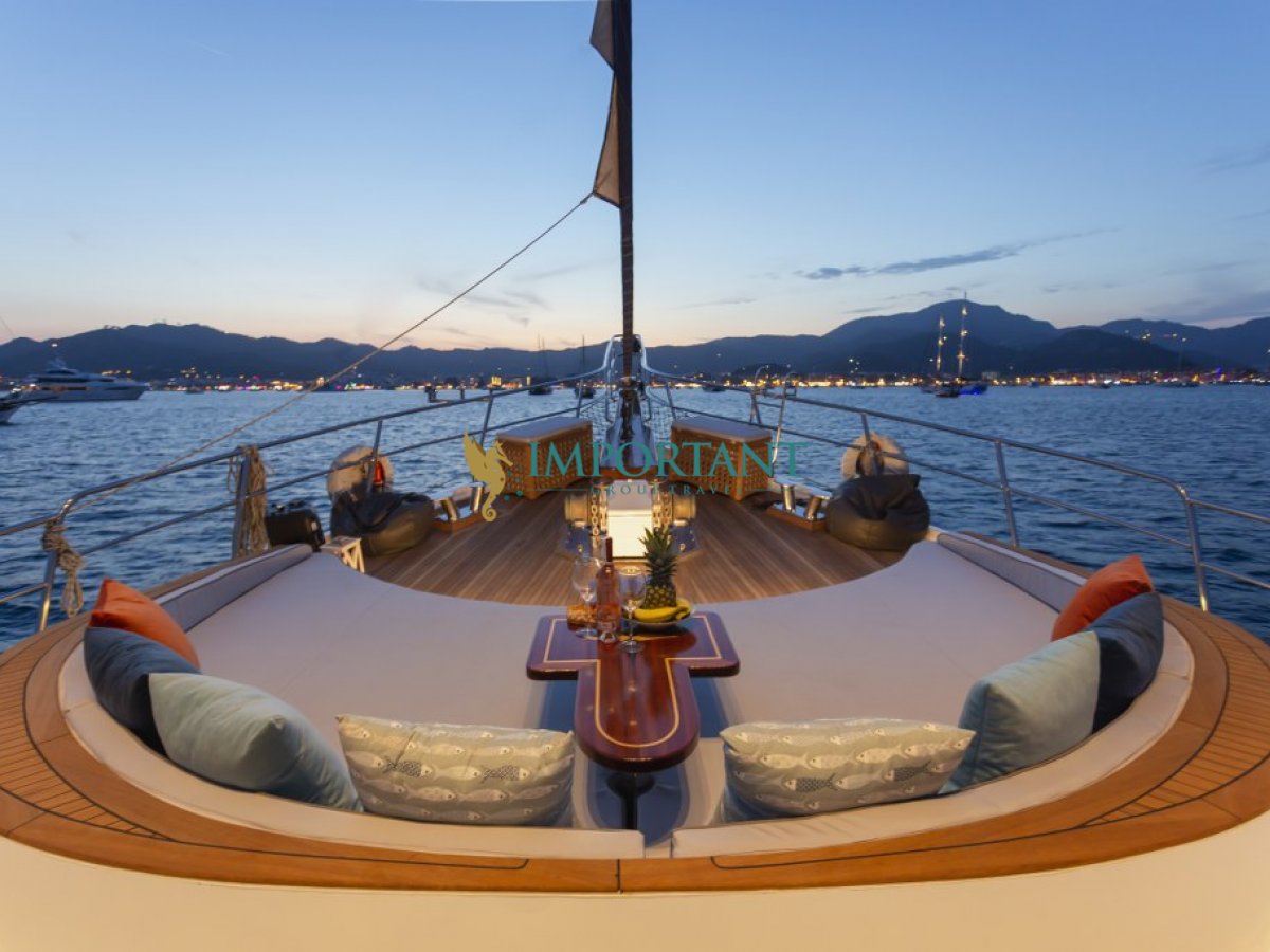 Marmaris çıkışlı bu lüks guletimizle unutulmaz bir mavi yolculuğa çıkabilirsiniz. Farklı destinasyonları tercih eden misafirlerimiz için Bodrum' un tarihi koylarını keşfedin, Göcek ’in gizli cennetlerini ziyaret edin veya Fethiye' nin kristal berraklığındaki sularında yüzün, Bozburun’ un bozulmamış güzelliklerinde ; ayrıca maceranızı Yunan Adaları’ na kadar uzanabilirsiniz (Yunan Adaları için ekstra ücretler hakkında bilgi almak için bizimle iletişime geçin). Bu unutulmaz deneyimde hem evinizdeymiş gibi huzurlu hissedecek hem de Ege’nin masmavi sularında özgürlüğün tadını çıkaracaksınız.