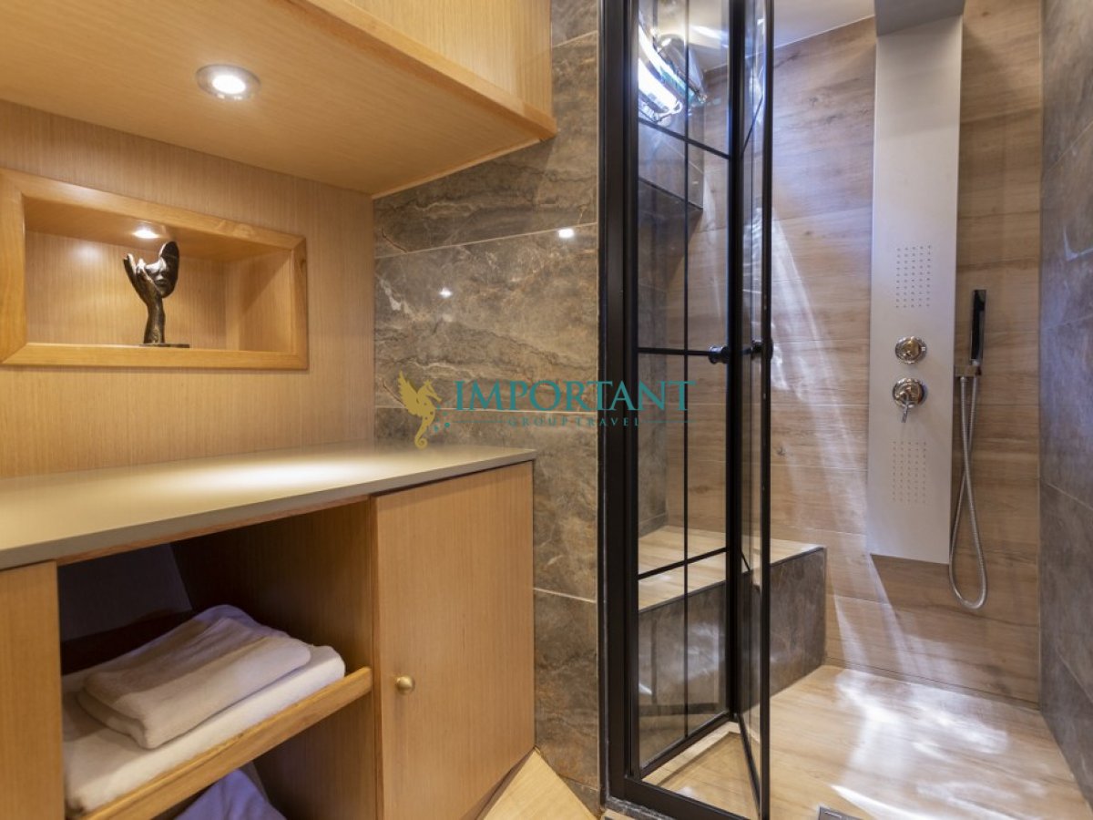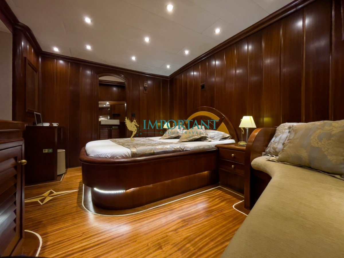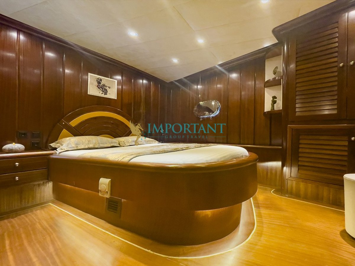 29 metre uzunluğundaki bu lüks gulet, Marmaris çıkışlı olarak Ege Denizi’nin büyüleyici koylarını ve masmavi sularını keşfetmeniz için eşsiz bir fırsat sunuyor. 2 adet master, 2 adet double ve 2 adet twin kabini ile toplamda 12 kişilik konaklama kapasitesine sahip olan teknemiz, konfor ve lüksü bir arada sunmak üzere tasarlanmıştır.